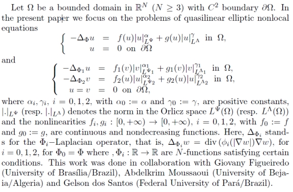报告人简介:LeandroS.Tavares,巴西坎皮纳斯州立大学理学博士,坎皮纳格兰德联邦大学博士后,现任卡里里联邦大学副教授。主要从事椭圆型偏微分方程及自由边界问题解的存在性、正则性研究,与多个国家作者合著高水平论文10余篇,并担任多家SCI期刊审稿人,曾访问阿根廷、意大利、中国等国家。