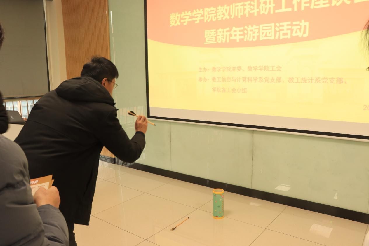 为了增强 av解说 教师的感情交流,营造热闹的新年氛围,座谈会结束后, av解说 工会为参会教师组织了新年游园活一个个有趣的小游戏将本次活动推向了高潮。