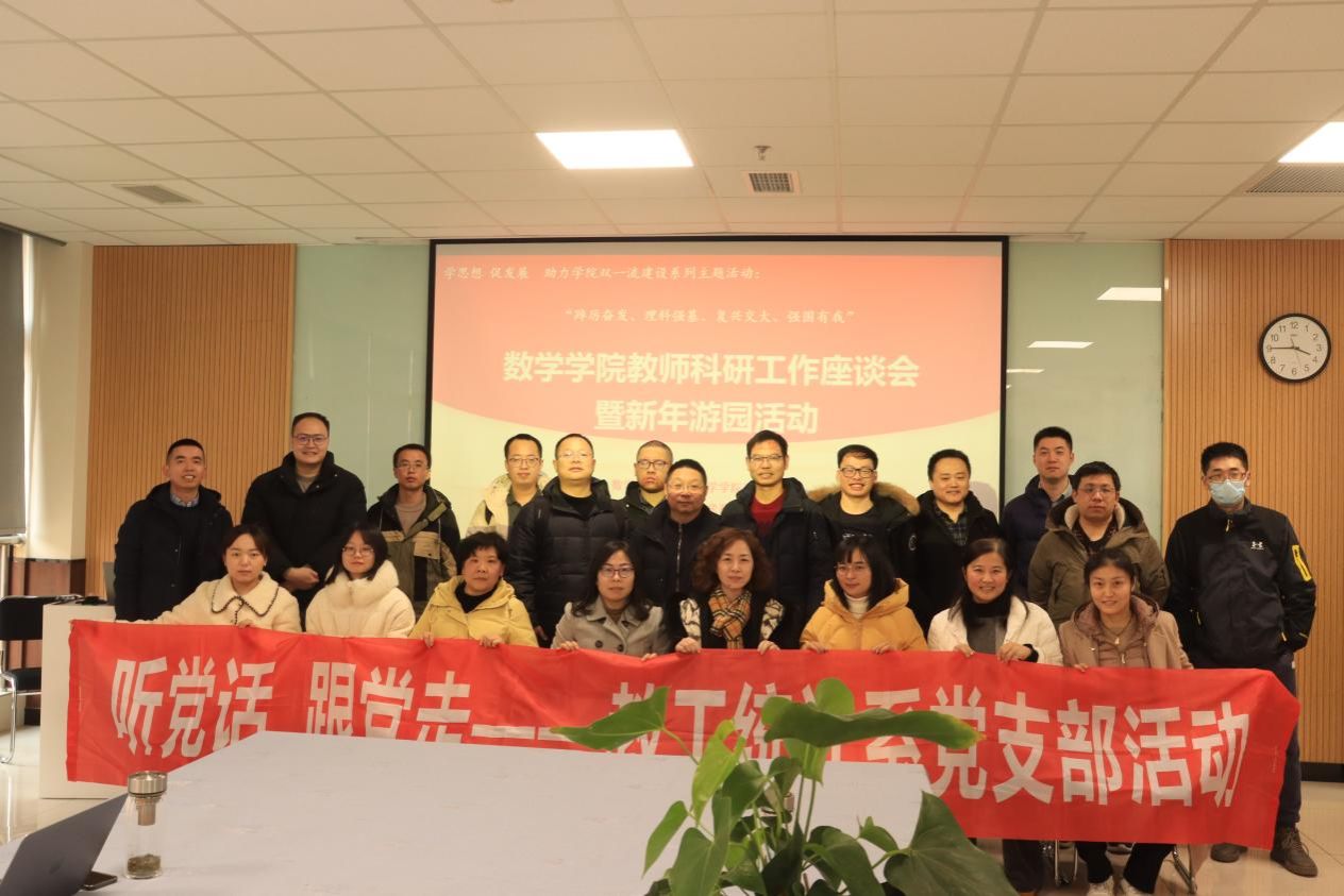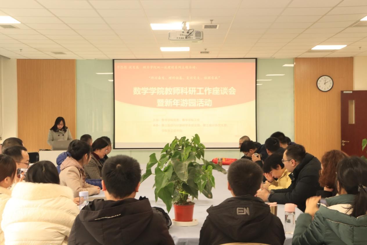 为深入贯彻落实党的二十大精神,贯彻 av解说 第十五次党代会精神,12月21日下午2点,数学学院教师科研工作座谈会暨新年游园活动于X30456召开。本次活动由 av解说 党委、 av解说 工会主办,信息与计算科学系党支部、统计系党支部、 av解说 各工会小组联合承办。 av解说 党委书记徐革、副院长王璐、院长助理杨洋、工会主席秦应兵、工会副主席郝虹、统计系党支部书记乔高秀、信息与计算科学系党支部书记何星星及青年教师代表参会。本次会议由统计系党支部书记乔高秀主持。