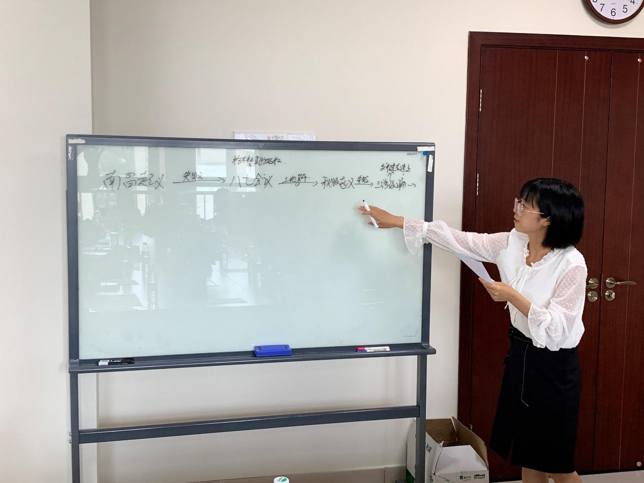邓思然对1927—1937年间的党史大事件做了详细的梳理。她讲到,这十年被称作是中国共产党人历史上走过的最艰难曲折的十年。邓思然以时间轴为主线向大家一一讲述了历史上著名的“四一二”反革命政变,以及南昌起义、秋收起义、广州起义这三大起义的起因、经过,并对其历史意义作了详细的阐述。此外,还从“土地革命”的背景出发,围绕“土地革命”的内容及意义,介绍了红军反围剿胜利的根本原因,总结了历史经验带给我们的启迪。