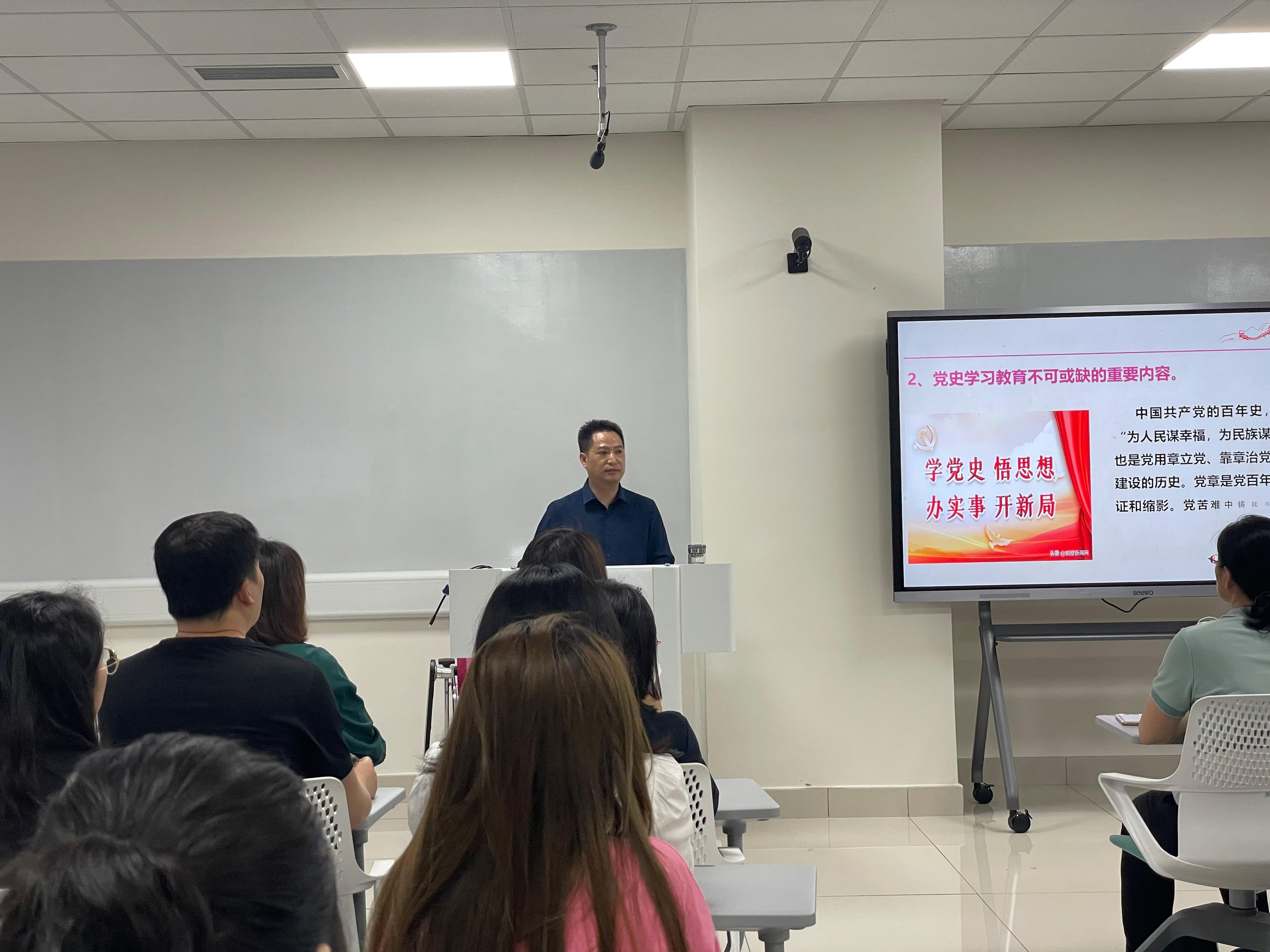 “全党学习贯彻党章的水平,决定着党员队伍党性修养的水平,决定着各级党组织凝聚力和战斗力的水平,决定着全面从严治党的水平。不论是高级干部还是普通党员,要做合格党员,学习贯彻党章都是第一位的要求。”李学勇教授首先引用习近平总书记的讲话强调了学党章和用党章对广大党员们的必要性,接着提出“学习贯彻党章的必然要求;党史学习教育不可或缺的重要内容”两点要求。通过李学勇教授的讲话,在场老师、同学都对党章学习和使用有了更加深刻的认识和严肃的对待。