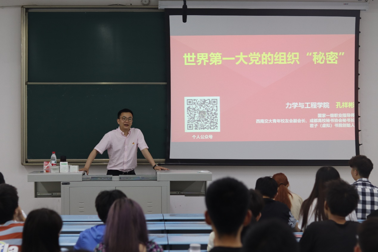孔书记从党与国的关系切入,开始了第一个主题“这是一个讲规矩的党”的讲解。首先,他向大家介绍了中国共产党的根本组织制度和领导制度:民主集中制。他讲到,民主与集中是辩证统一的关系,民主建设是基础,集中建设是关键。随后,在讲到第二个主题“这是一个纪律严明的党”时,孔祥彬介绍了中国共产党的六大基本原则,以及党的六大纪律。在讲到党的纪律时,他以任志强、毕福剑为反面例子使大家充分理解并予以警示。最后,在主题“这是一个作风优良的党”的讲解中,孔祥彬则以学生为例向大家介绍了身为积极分子应该怎样做,并从学习上、生活上、网络上向大家提出了相关的建议与要求。