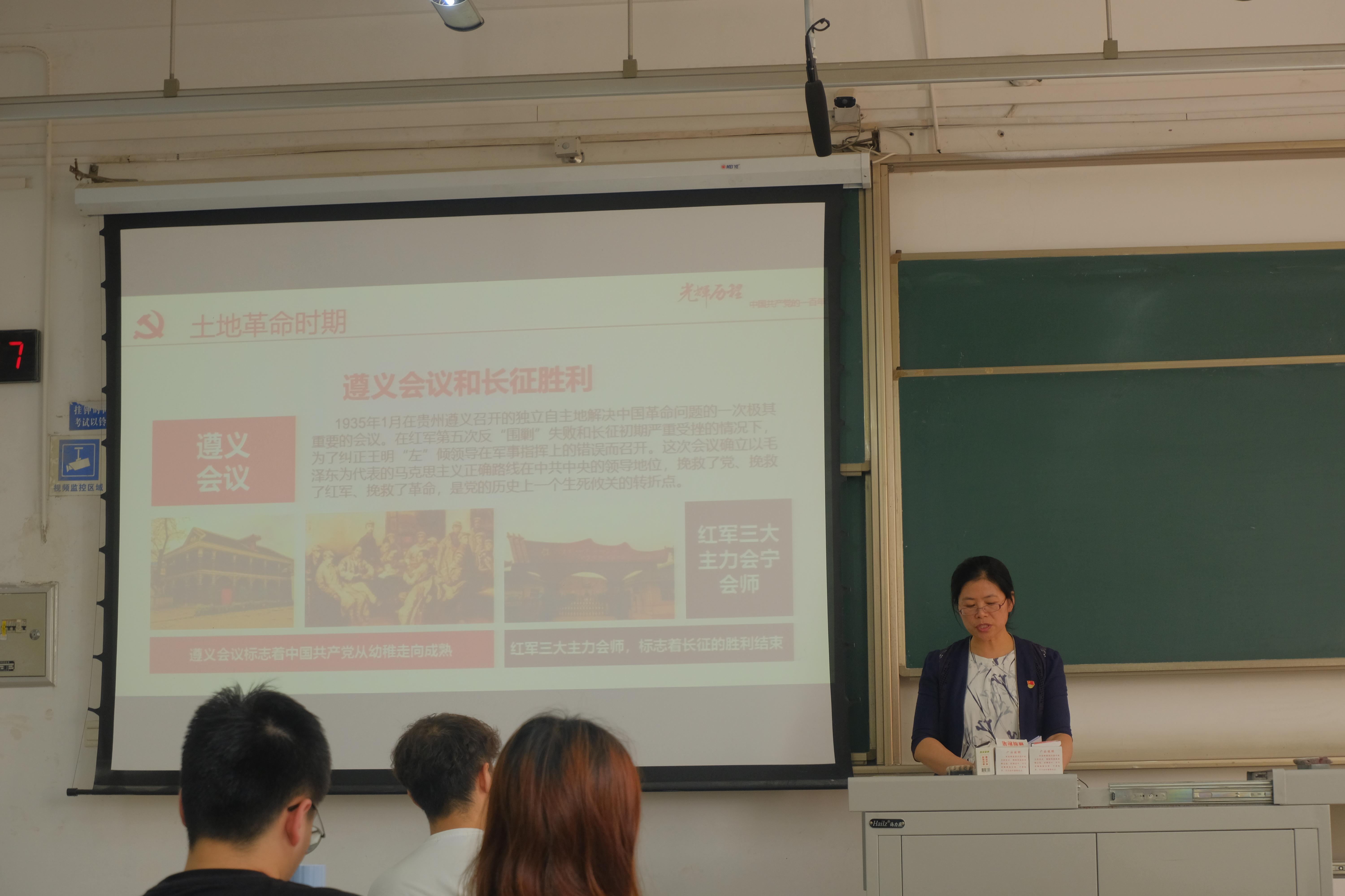 首先,徐革书记讲述了党史发展脉络。以马克思主义在中国的传播为发展主线上看,中国共产党的发展脉络主要分为中国共产党成立,毛泽东思想基本形成,邓小平理论成型,习近平新时代中国特色社会主义思想的形成。从时间脉络上,党史的发展历程主要分成四个阶段:新民主主义革命时期、社会主义革命和建设时期、改革开放和社会主义现代化建设新时期、中国特色社会主义新时代。之后,徐革针对党史发展的四个阶段,结合各个阶段的重要历史事件详细地向我们讲述,帮助大家更好地学好百年党史。此外,徐革还强调,中国共产党历史发展的主题主线是争取民族独立、人民解放和实现国家富强、人民幸福两大历史任务;主流本质是党的不懈奋斗史、理论探索史、自身建设史的统一。最后,徐革激励同学们要有树立自信,增强“四个意识”、坚定“四个自信”,推动全面建设社会主义现代化。她讲道:我们今天在这里学习党史,是为了让大家能够把红色基因一代一代传承下去。因为一代人有一代人肩负的使命,未来的民族复兴大业必然是交给在座的各位青年手中。学党史,是为了让我们新时代青年能够有远大的抱负、远大的理想,胸怀忧国忧民之心、爱国爱民之情,奉献国家,奉献社会,奉献人民。同时,徐革殷切期望在座的各位积极分子能够把入党当成一种信念,人生道路上理想的推动力。