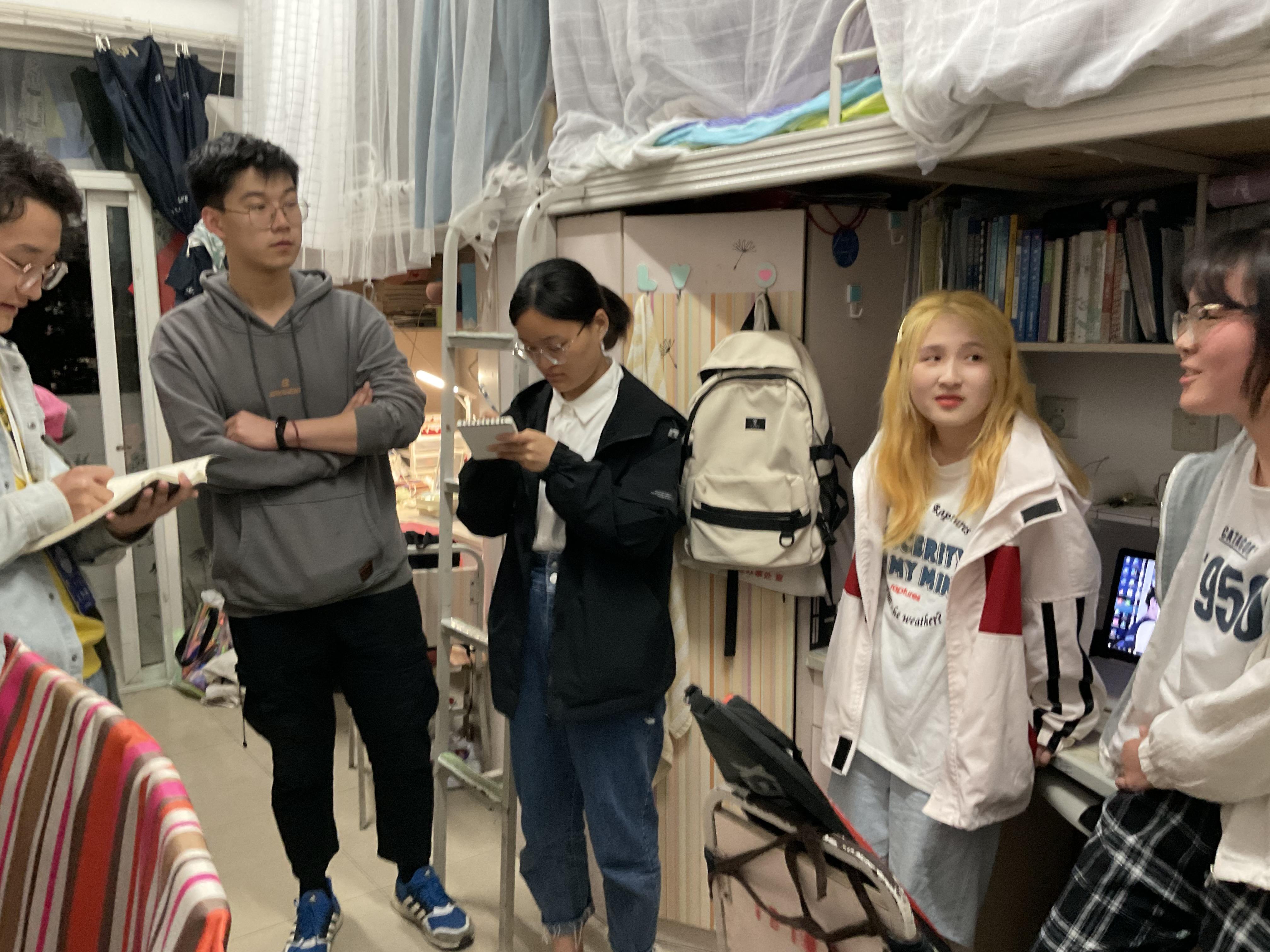 邓思然老师、周睿老师与学生会主席周义杰学长,以及生活权益部相关工作人员走访了19届寝室各班寝室,积极地与同学们进行各个方面的交流,调查同学们生活与学习中所遇到的普遍困难与相关诉求。