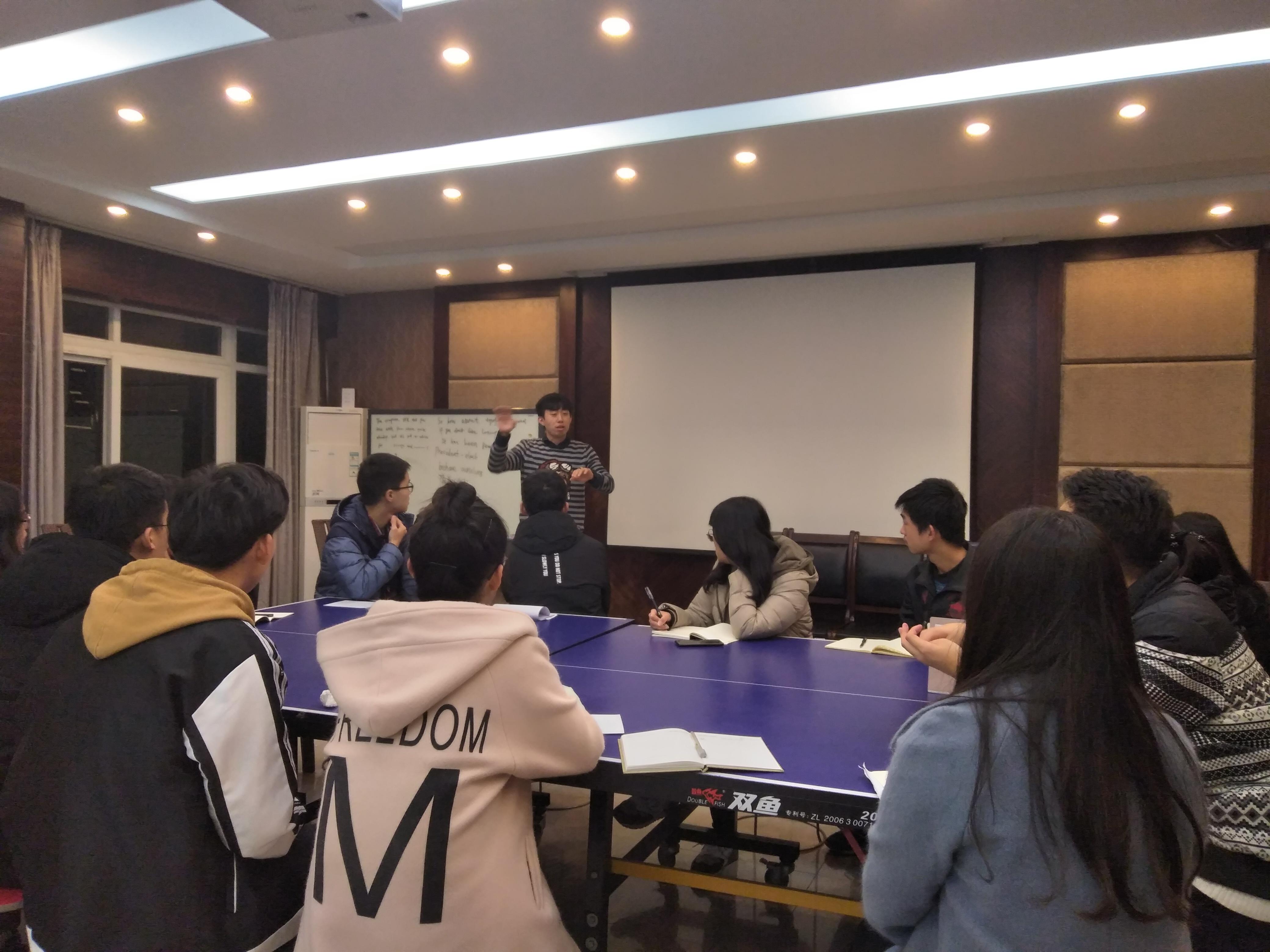 2018年11月21日晚上七点事务中心举办了关于“如何学好英语”和“怎样养成良好的生活习惯”的分享会。我们邀请了边寅初学长、还鸿新学长、郑伟洁学长和张红佳学姐来做本次的分享,每位同学都受益良多。