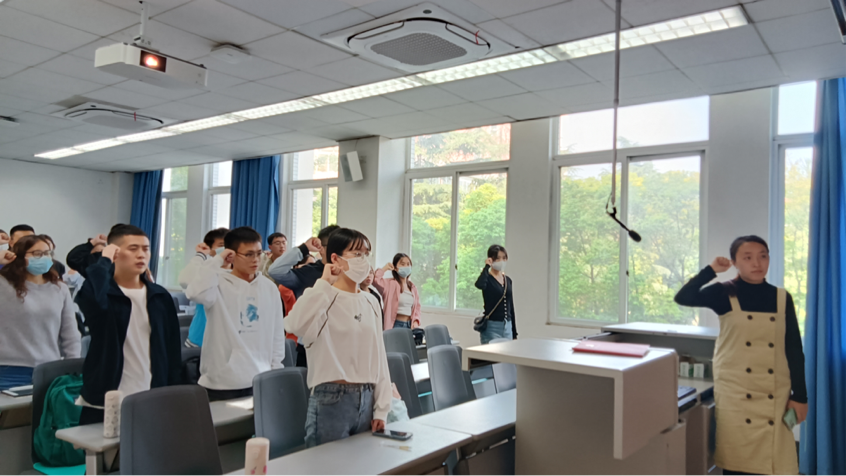 10月21日,研究生2022级党支部全体正式党员、预备党员和入党积极分子于九里J4222集中学习习近平总书记在中国共产党第二十次全国代表大会上做的报告。会议学习总共分为五个内容——二十大报告要点、二十大报告重要论断、二十大报告重要举措、心得感想以及重温入党誓词。