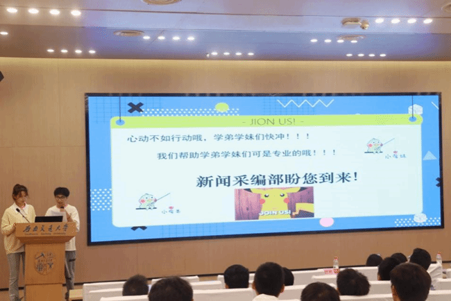 团学组织招新宣讲会在图书馆二号报告厅顺利召开。 av解说