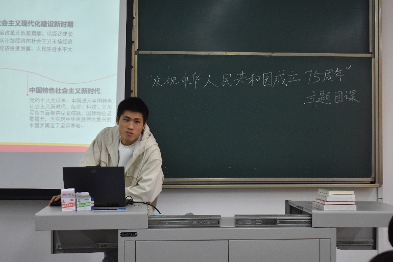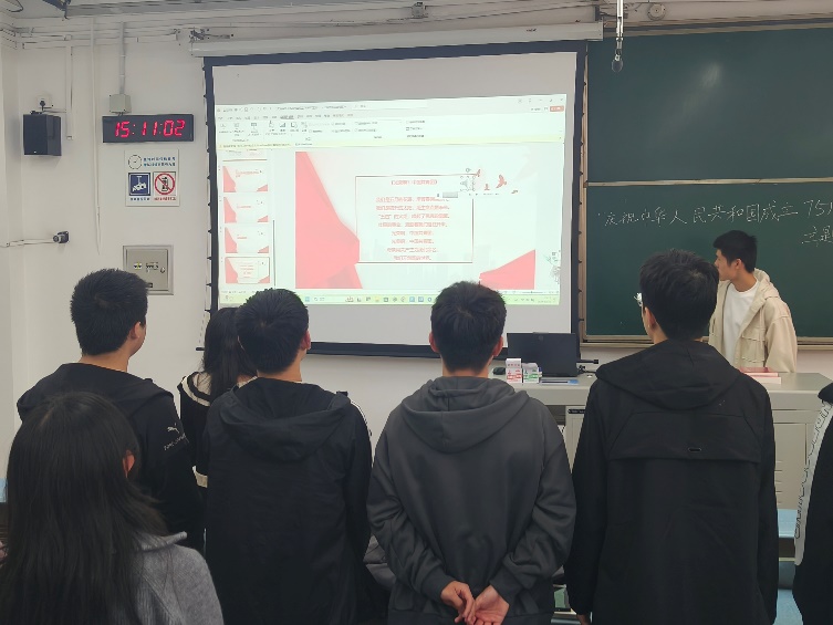 为庆祝中华人民共和国成立75周年,进一步深化同学们的爱国主义精神,10月31日下午,2023级数学1班于X2218教室开展“庆祝中华人民共和国成立75周年”主题团课,并邀请了 av解说