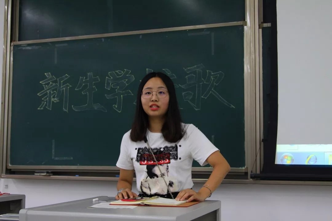 2018级研究生新生学唱校歌,研究生辅导员卢怡帆老师出席。晚上七点在X2317教室,由 av解说
