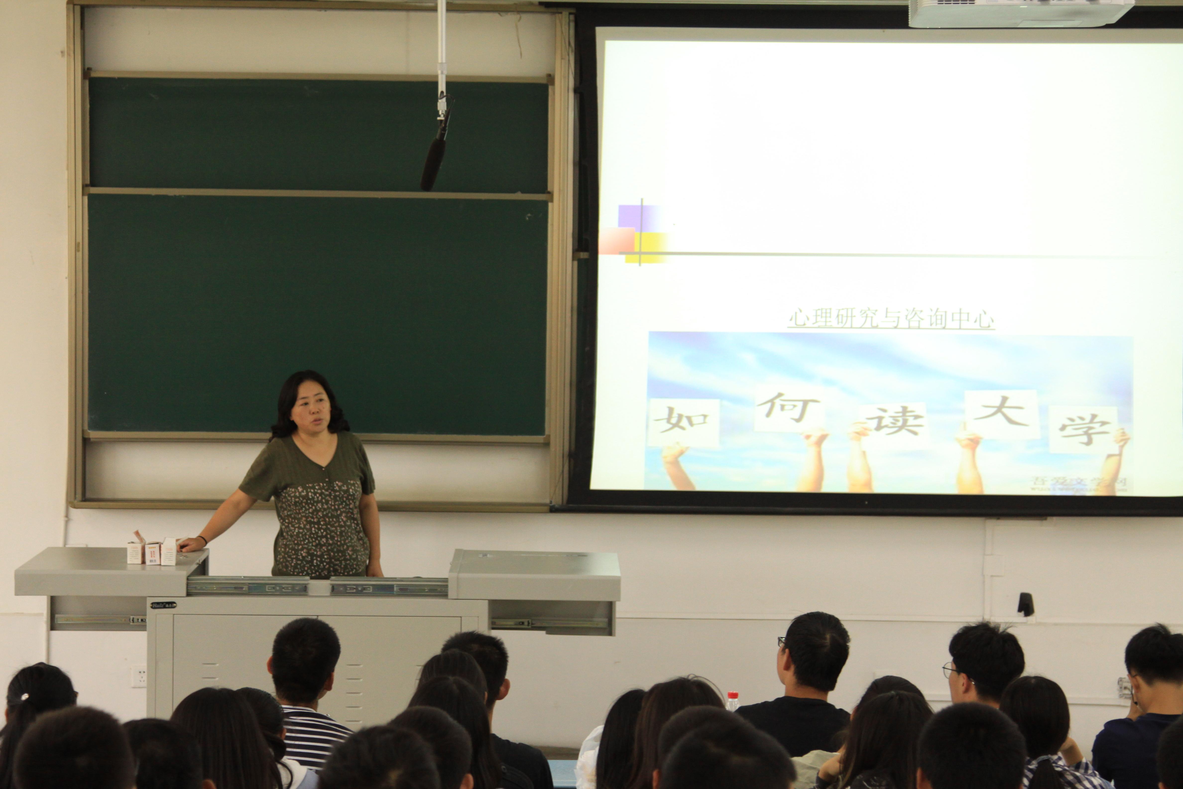 讲座一开始,张老师首先为同学们探讨了“为什么要上大学”,让同学们首先了解大学的含义。张老师告诫同学们大学要活在当下,充分感受大学的美好,千万不能虚度光阴,要学着去适应环境。接着,老师为同学们分析了大学刚入学时的一些心理状态,并详细为大家提出了实用而有效的建议。随后,谈到学习,张老师告诉同学们平时要自信,不要盲目攀比,这样不仅对学习有帮助,而且会使自身更有魅力;开始上课之后,不要因为课程困难就自暴自弃,一定要坚持下去,相信自己。