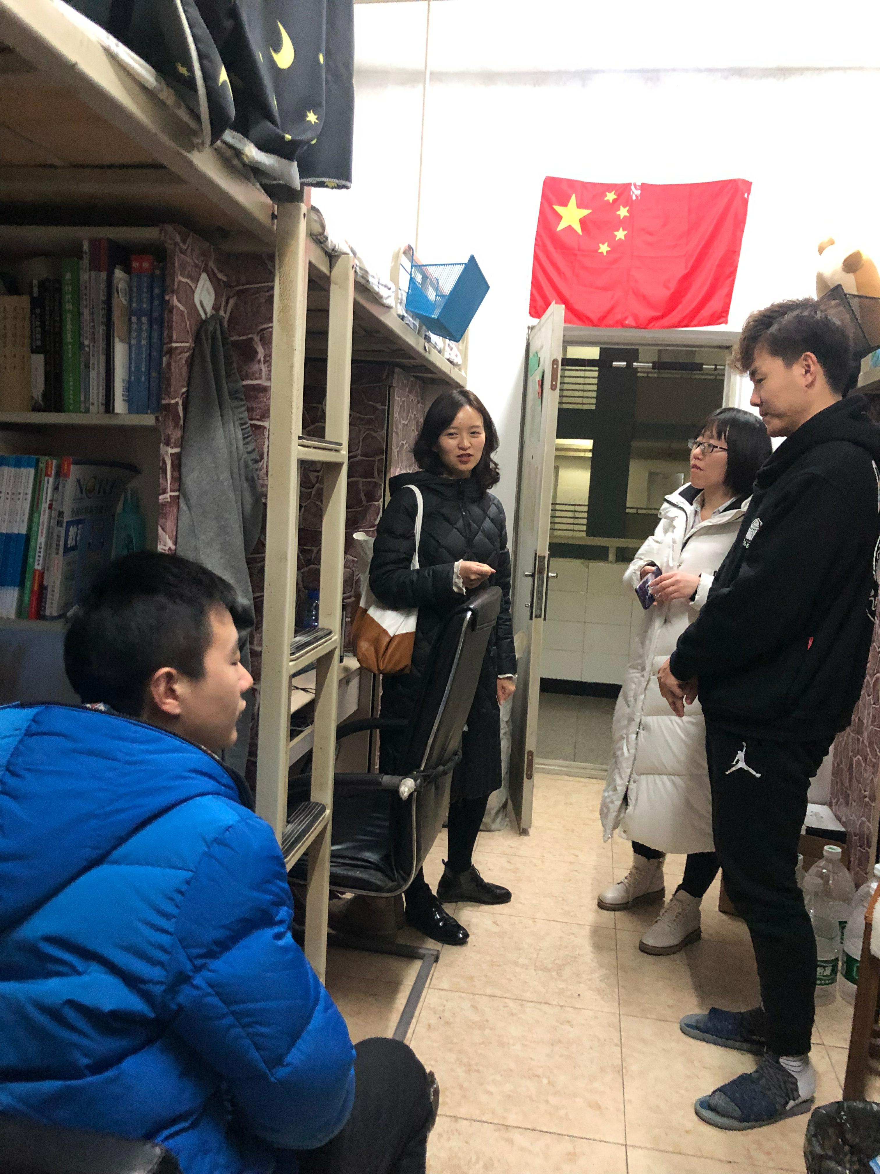 2月24日傍晚时分, av解说 团委书记邓思然老师、16级和18级辅导员钟义婷老师、17级辅导员谢童心老师、15级辅导员李思佳老师为确保新学期学生们的返校安全和了解寝室的整体卫生情况分别对 av解说 四个年级学生的返校情况进行了视察。