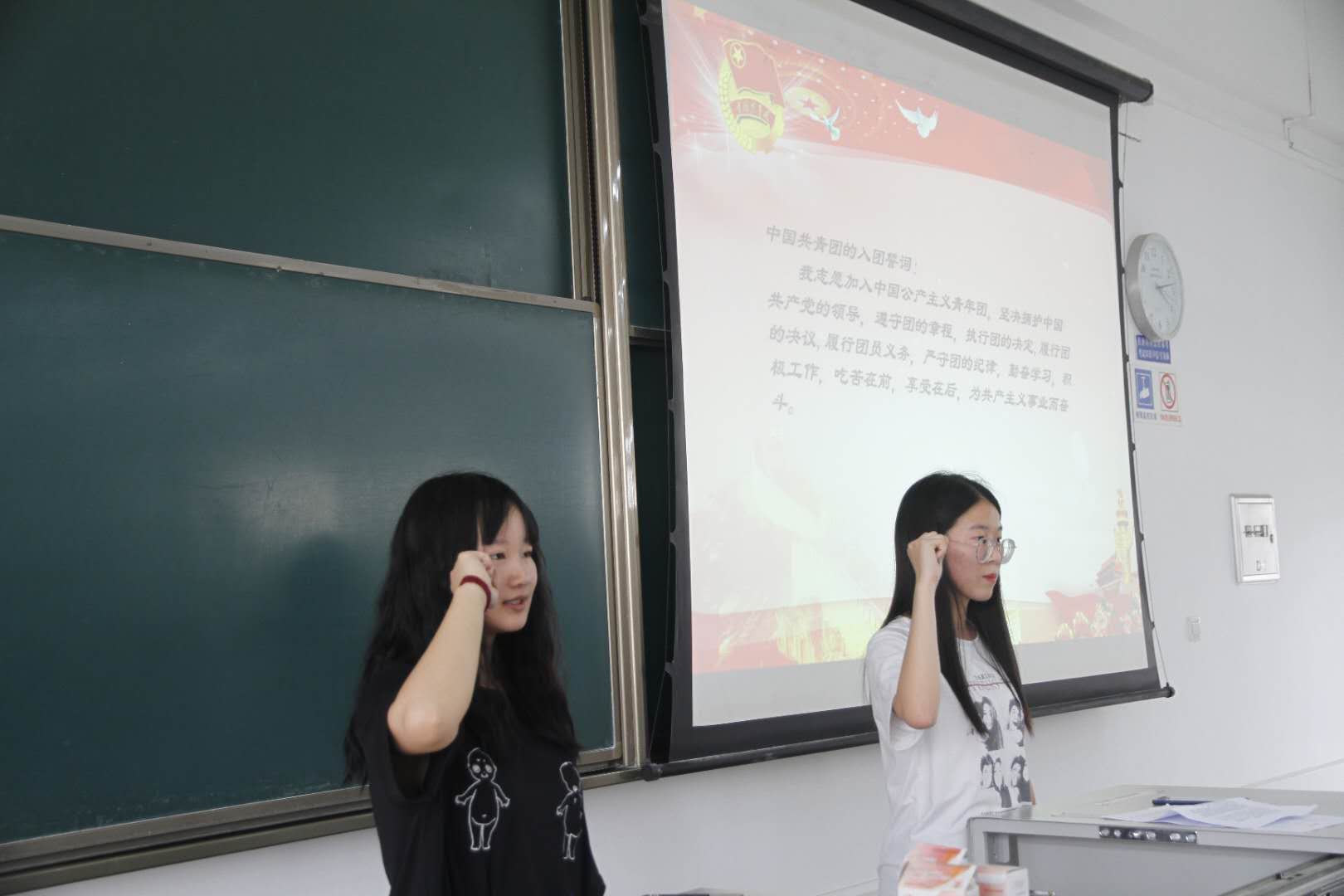 会议另一项,米贤惠同学提出团员应该积极向团组织靠拢,完成青年大学习的学习,并在会上给予团员时间学习团课。接着由数学二班学习委员裴博尊同学带领同学们宣读入党誓词,并提出团员应牢记使命,遵守团的章程,履行团员义务。会议最后,邱灵提出各团员应积极参加团活动,争做优秀团员。本次会议圆满结束。