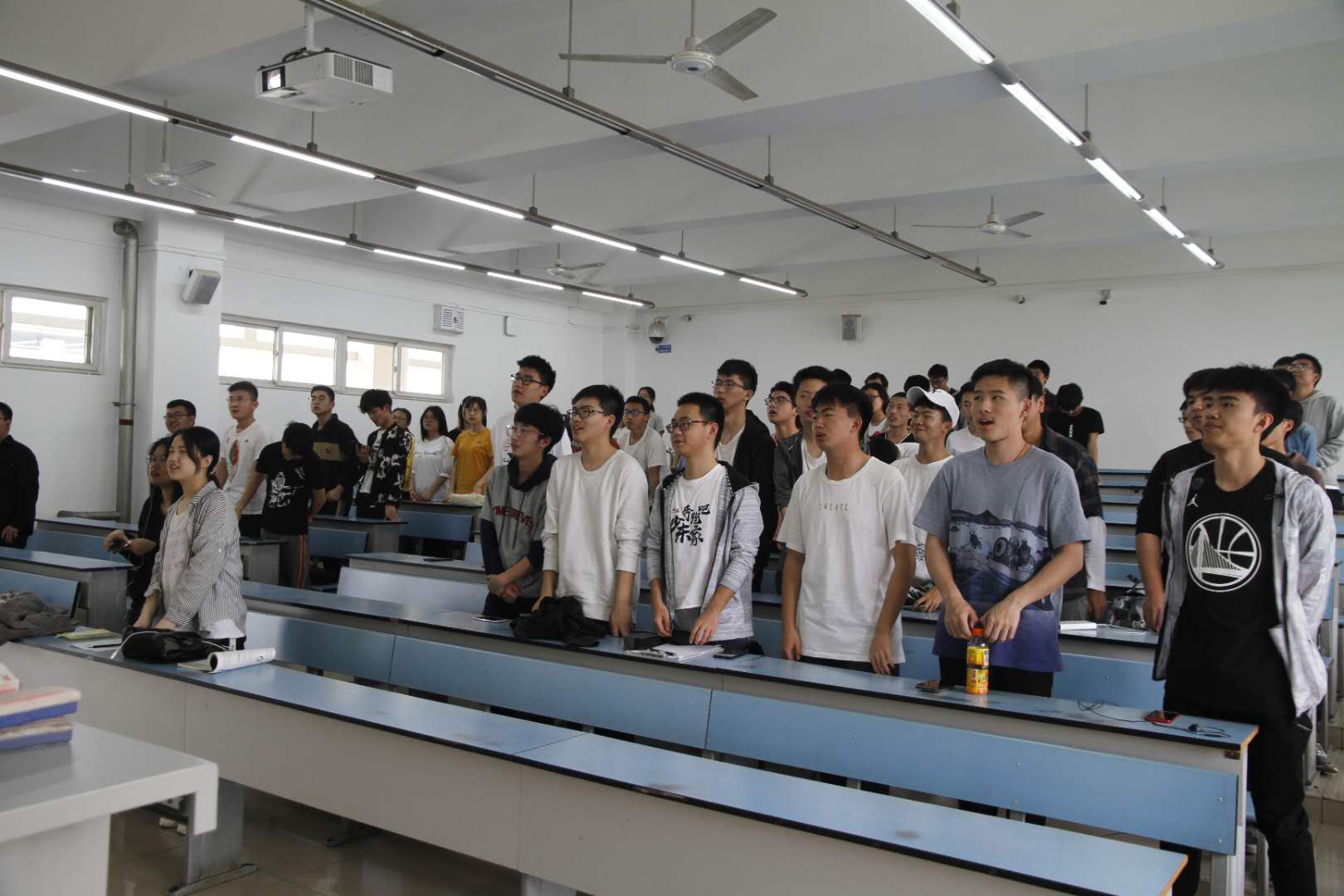 会议开始,全体团员齐唱团歌之后,邱灵同学为同学们讲解了五四运动的概况,重温历史,提出“弘扬五四精神,点燃青春之火”,各团员应该吃苦在前、享受在后,以身作则,展现团员作用,发扬团员精神。