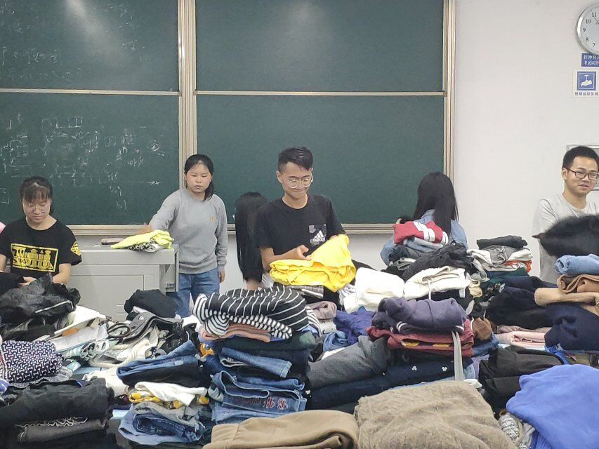 青年志愿者协会展开了旧衣募捐活动,活动分为三部分:线下宣传、旧衣收集和旧衣整理。