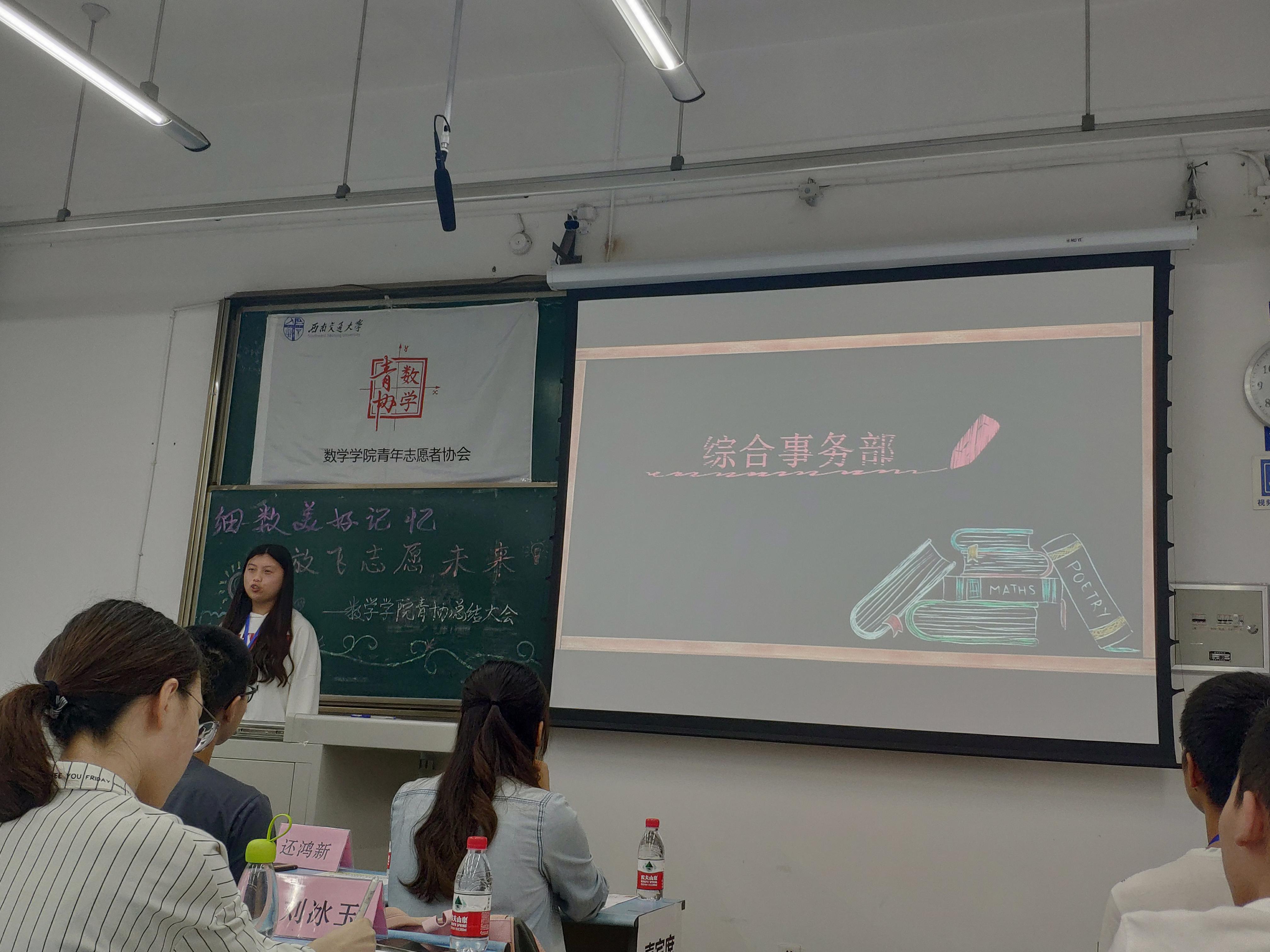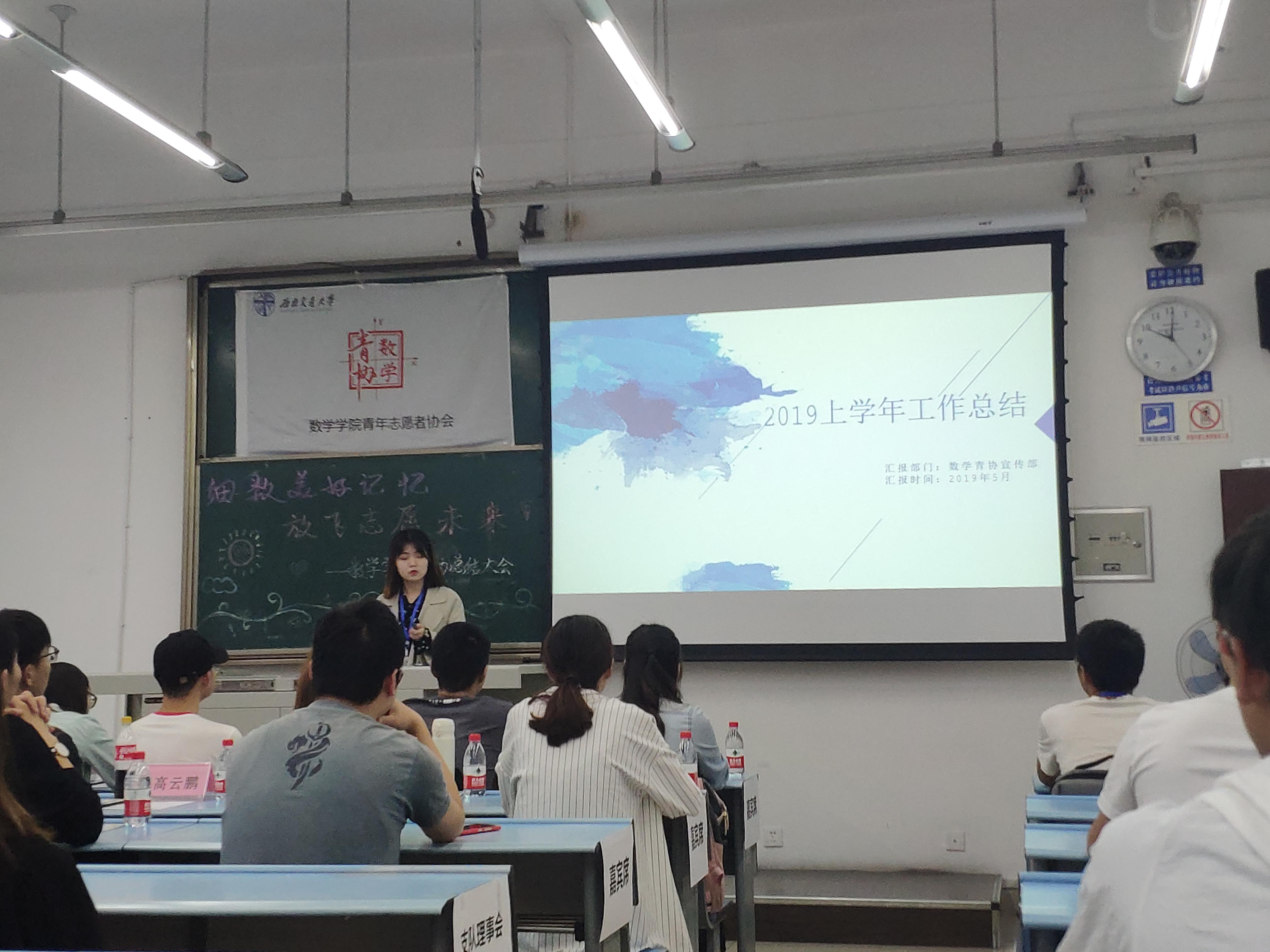 青年志愿者协会2018—2019学年第二学期总结大会在X2423教室隆重举行。本次青协总结大会以“细数美好回忆,放飞志愿未来”为主题,希望回顾数学青协这一学期以来的美好点滴,同时鼓励数学青协的每一位志愿者能够不忘初心,坚守本心,牢记志愿者初衷,继续践行志愿者精神,成为 av解说