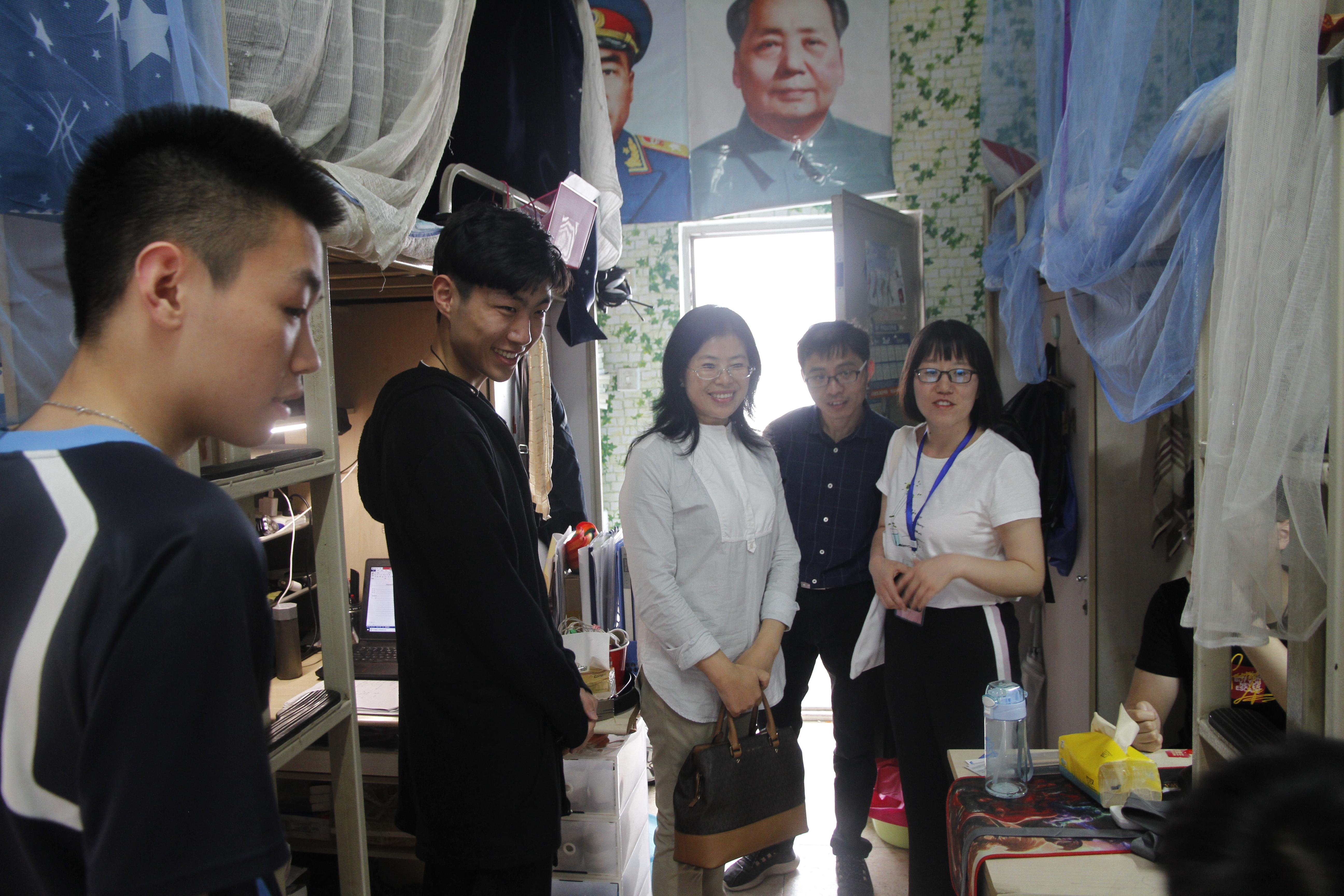 5月31日下午, av解说 党委书记徐革、党委副书记杨育鸿以及15级辅导员李思佳一行人前往天佑斋20栋、3栋的本科大四毕业生寝室看望毕业生。