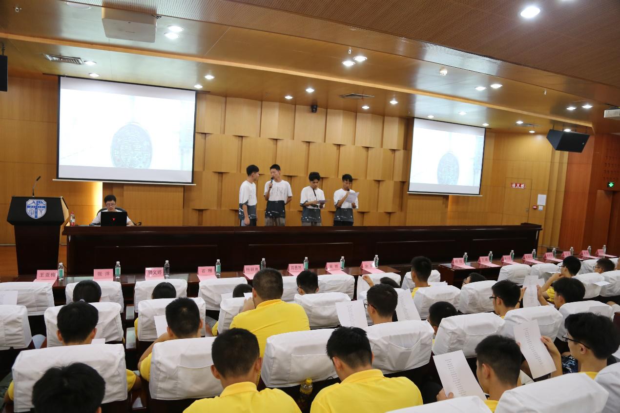 新生们集体合唱了两遍校歌。同学们的合唱一遍比一遍熟练,相信他们已然将校歌旋律牢记于心。