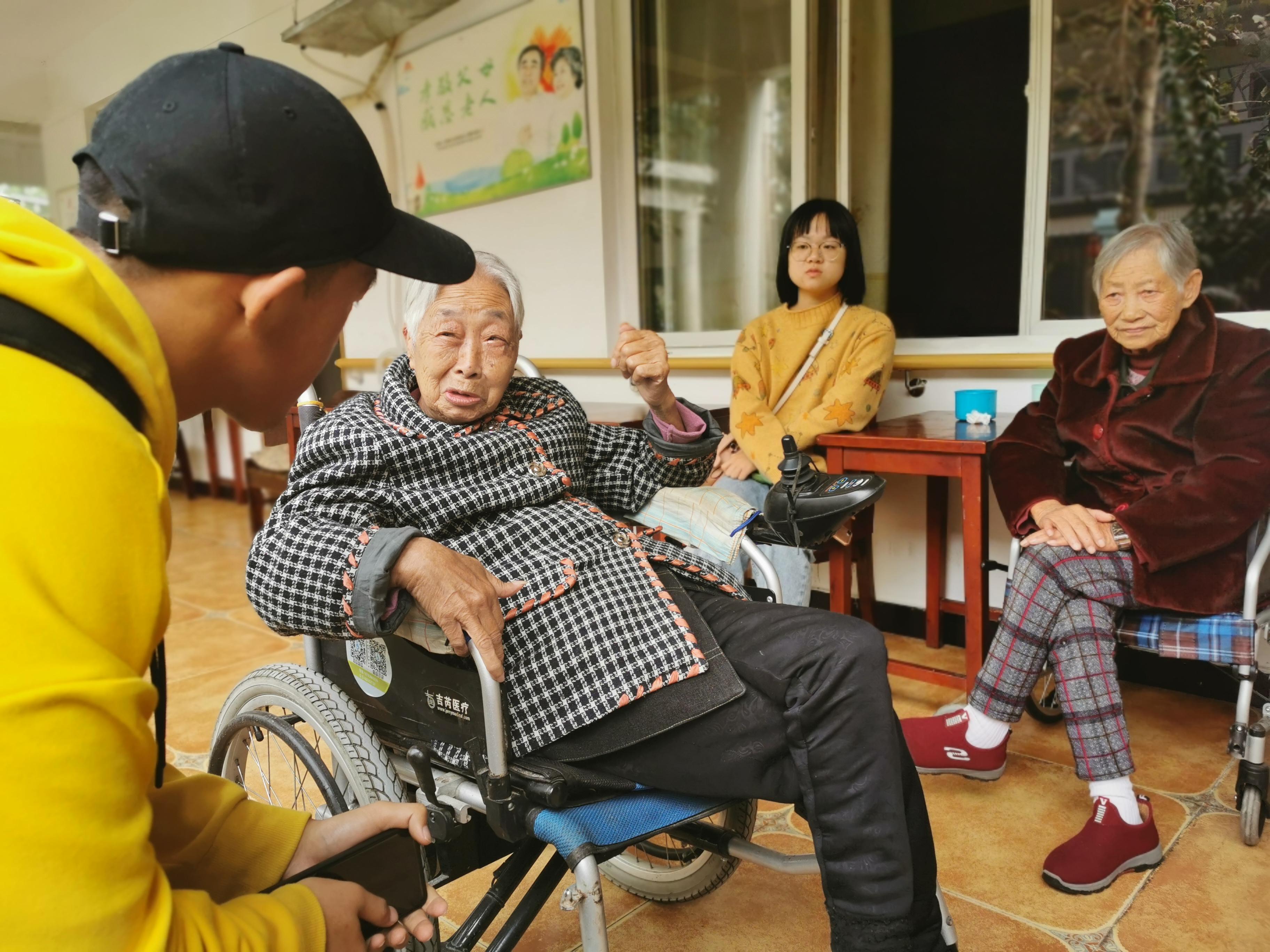 统计一班的同学们的目的相同,希望自己的陪伴能让老人们感受到温暖,让他们脸上多一些开心的笑容。有的同学听着老人们讲岁月里的故事;有的同学趁着阳光正好,推着轮椅上的老人们出门感受微风;有的同学唱起了红歌,以歌声回忆着革命里的故事……