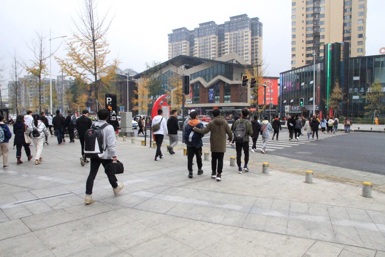 当日下午1:40,两班同学从犀浦校区西门出发前往地铁站搭乘地铁二号线前往天府广场。同学们遵守交通规则,红灯停绿灯行,有秩地前往地铁站。随后,两班班委们在统计人数后,让同学们尽可能均匀地搭乘一辆地铁出发,并告知同学注意保护人身财产安全,在天府广场站D出口集合等待。