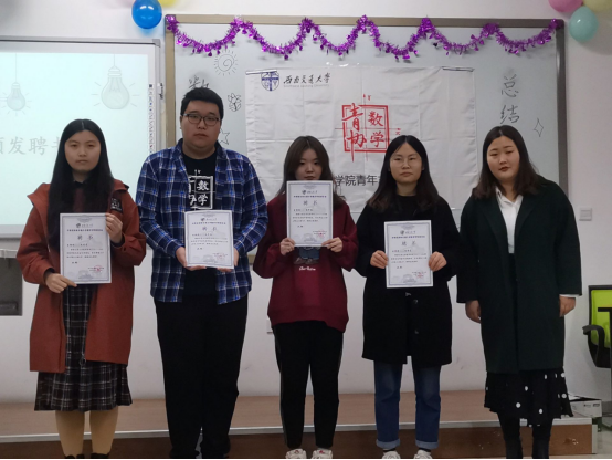 接下来是指导老师王亚梅老师向四位会长授予聘书,并和四位会长合照留念。之后,会长们也向几位部长授予了聘书。部长们在接受聘书的同时,也接下了繁重的工作以及会长们对他们的期望。