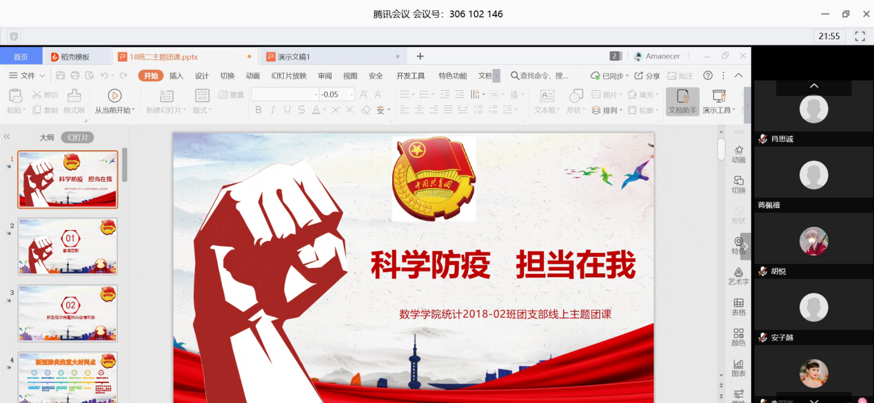 2020年的开年并不太平,新冠肺炎的横空降世极大地影响了中国人民的日常生活。战胜肺炎疫情是全体人民的切实心愿,也是我们共青团员肩上刻不容缓的责任。在这样的背景下,统计学2018级2班团支部以网课的形式,于3月5日开展“科学防疫,担当有我”主题线上团课。团支书李宏亮带领大家上了一堂意义深刻的团课。 av解说