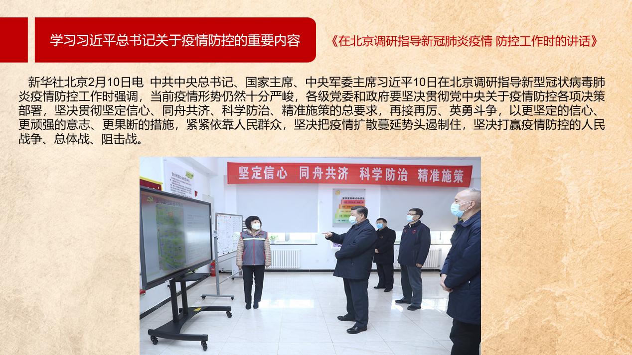 活动的第二部分内容是团员们学习习近平总书记关于疫情防控的重要论述。团支书王滋带领团员重点学习了习近平总书记《在北京调研指导新冠肺炎疫情防控工作时的讲话》。学习过后,团员们明白了青年在疫情防控战役中肩负着特殊的重要职责。作为时代的青年,我们要不惧风雨的挑战、勇往前线抗疫情,充分发挥自己本领,彰显青春的蓬勃力量。