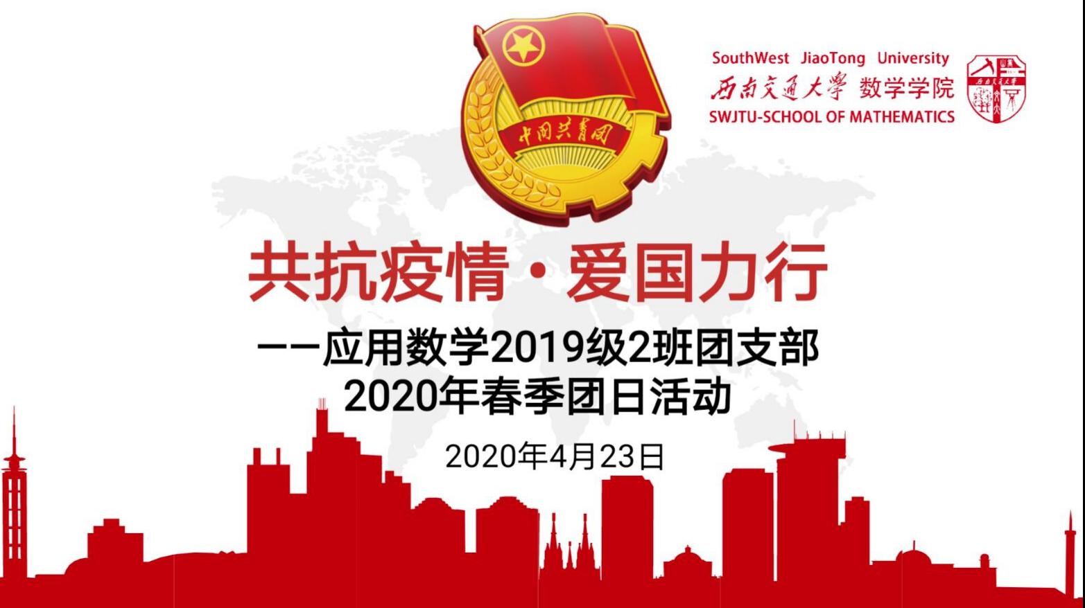 团委要求,应用数学2019级2班团支部于2020年4月23日下午2时开展了2020年春季“共抗疫情·爱国力行”主题团日活动。本次线上团日活动由班长刘昱伯主讲,支部24名团员均准时参加。团支部“1+100”负责人郑艺梅受邀参加活动。