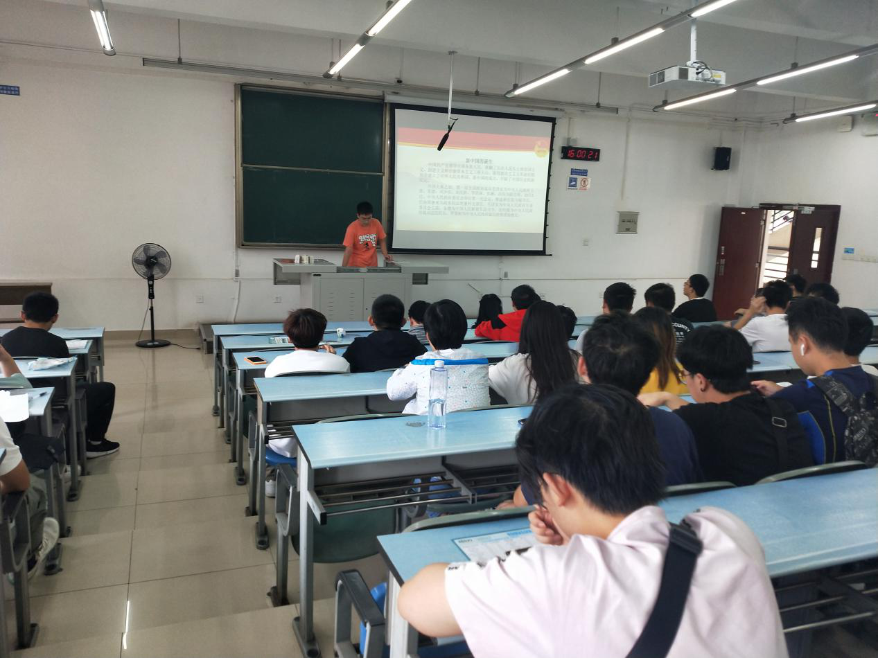 接着,由数学二班学习委员裴博尊带领大家学习新中国史。他就新中国的诞生、三年抗美援朝战争、十年建设时期、文化大革命时期、改革开放新时期做了深入讲解。他提出新中国史是中国共产党人守初心,担使命的奋斗史,各位同学应当时刻牢记。