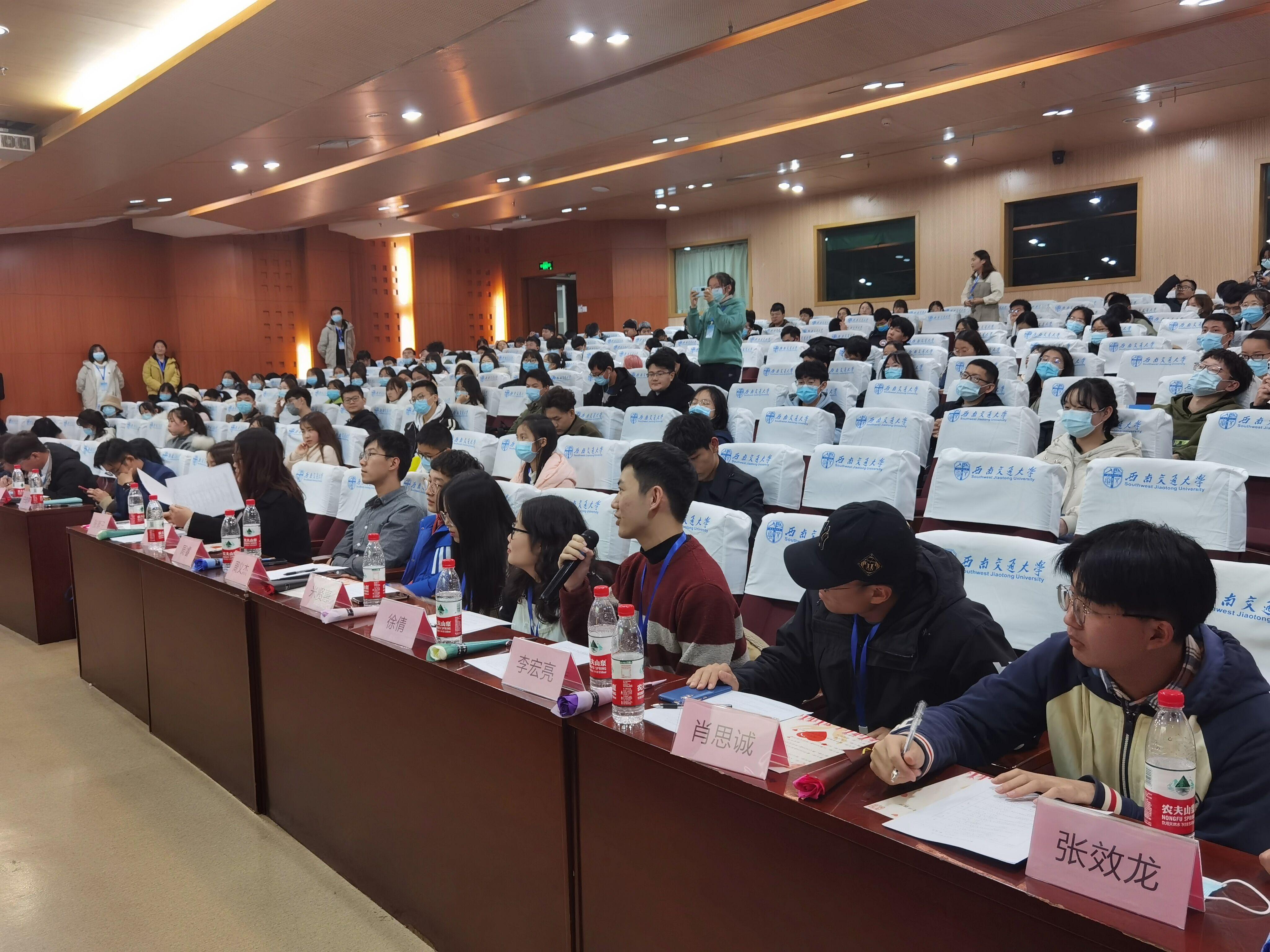 晚7时30分,答辩正式开始。在主持人依次介绍各位评委嘉宾之后,20级辅导员周睿老师进行了开场演讲。紧接着进入各团支部展示环节,此次答辩分别从参赛队代表人发言、评委进行相关提问、评委打分三方面依次进行。