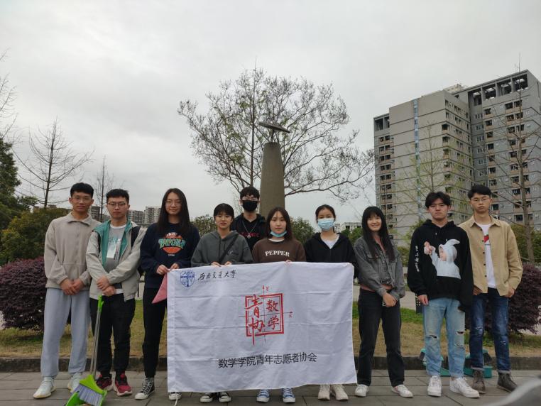 数学青协的部长以及干事们于下午6时10分于虹桥旁集合,下午6时20分进行了分组分工。在完成分工之后,他们拿起扫把和抹布开始了清洁工作。
