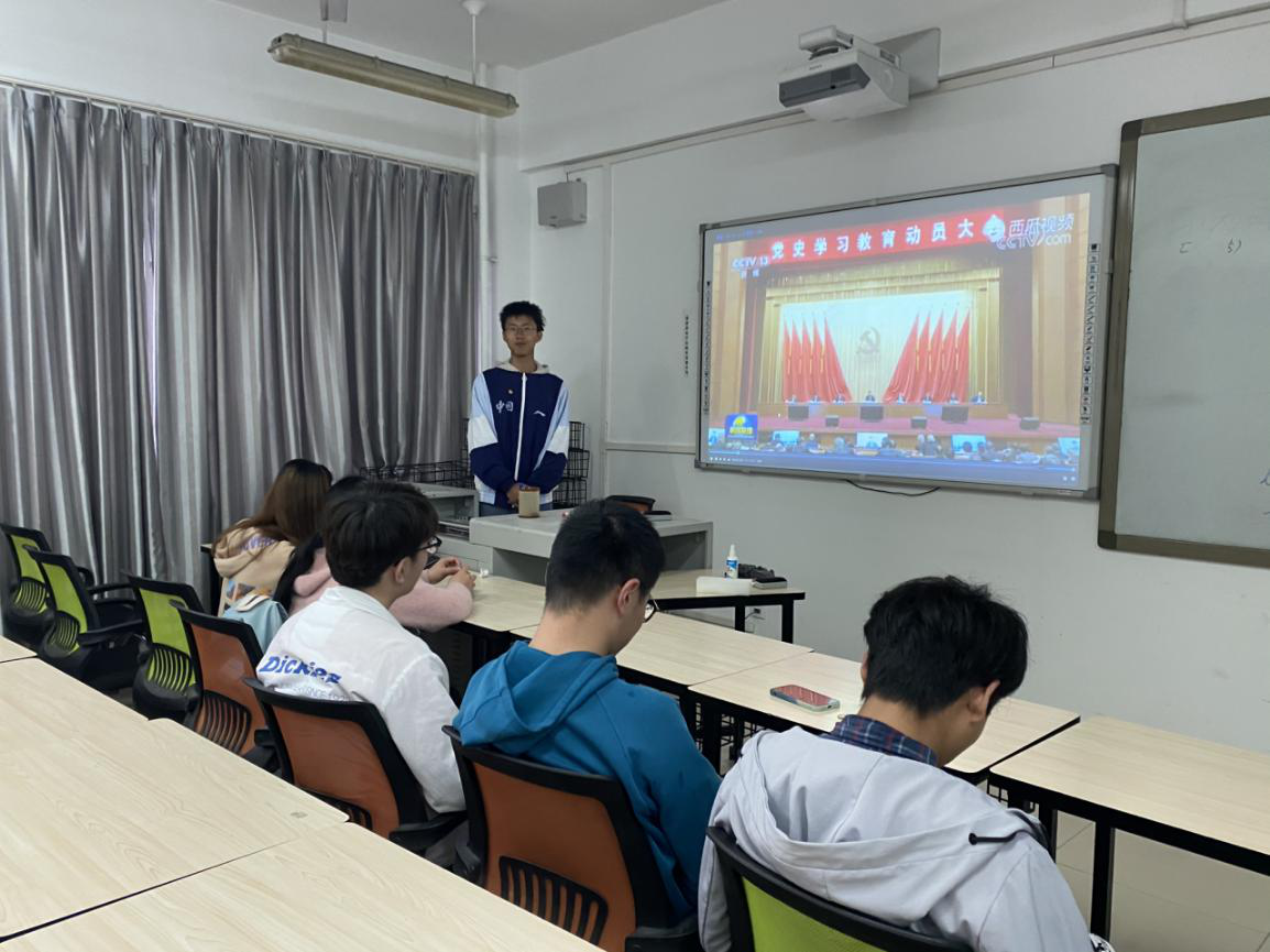 团课第一项,由团支书张翔为大家讲解中国共产党的建党历程,张翔为大家细致地讲述了中国共产党100年来筚路蓝缕的艰难历程与这些年来党取得的伟大成就,团支部的同学们认真听讲。