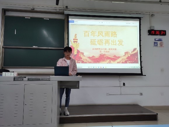 2021年4月15号19:30,2020级应用数学一班于x2214举办了春季第一次团课,团课主题为“风雨百年路,砥砺再出发”。本次团课由团支书鲍济洲主持。