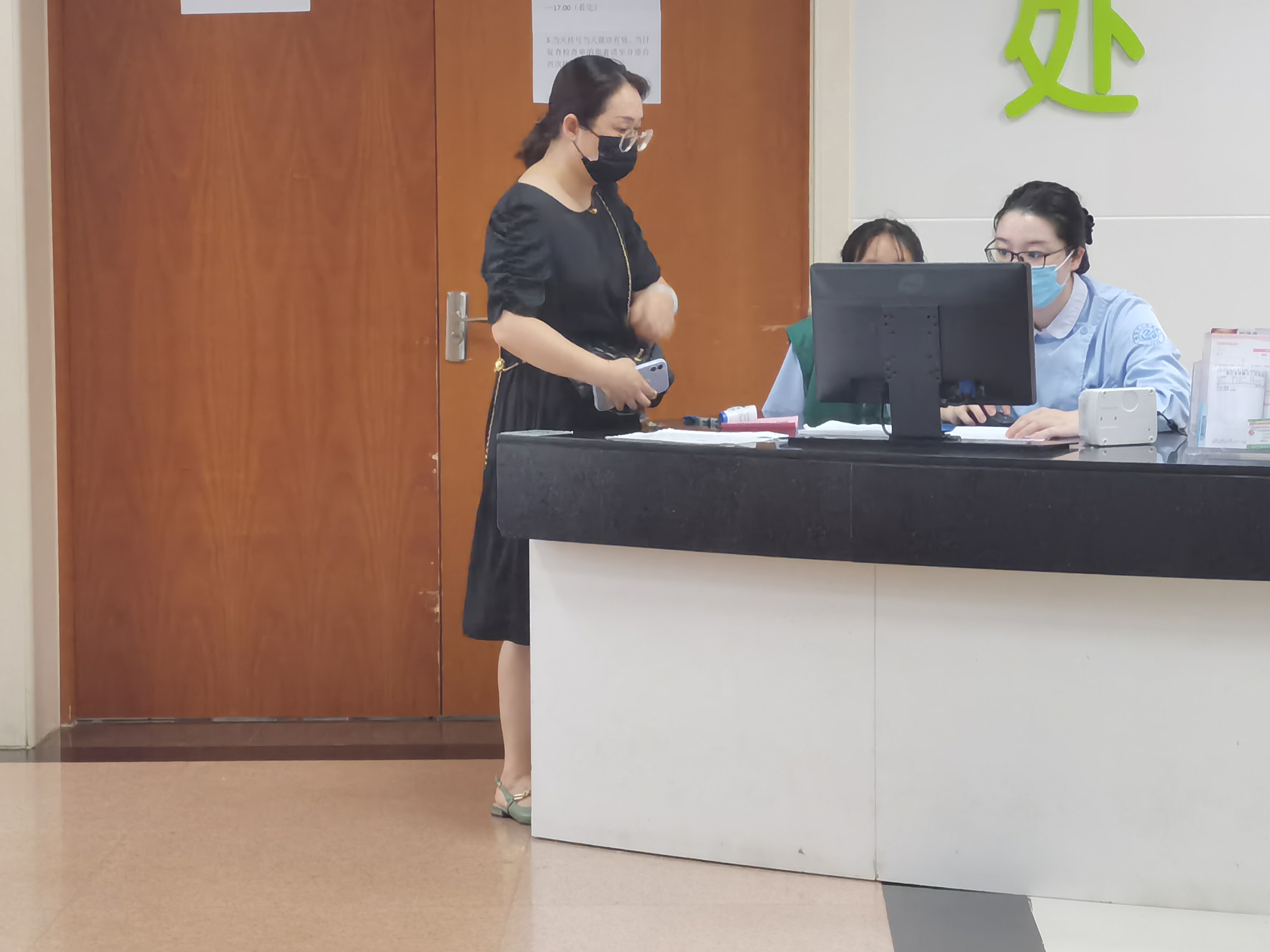 7月14日,队员们分别在各科分诊处做志愿服务,帮助医生进行传唤患者的工作,并解决患者的排号问题。7月15日,社会实践队员们依旧在门诊大厅的志工服务台集合,时间来到第三天,大家都对志愿服务的工作内容更加熟悉了,因此显得更加游刃有余。同学们为在门诊大厅等候的患者及家属送上温水,同时发放一些有关防控新冠疫情及各类传染病的宣传资料。当有一时疏忽的家属在门诊大厅吸烟时,志愿队员们便上前劝导,普及吸烟危害。