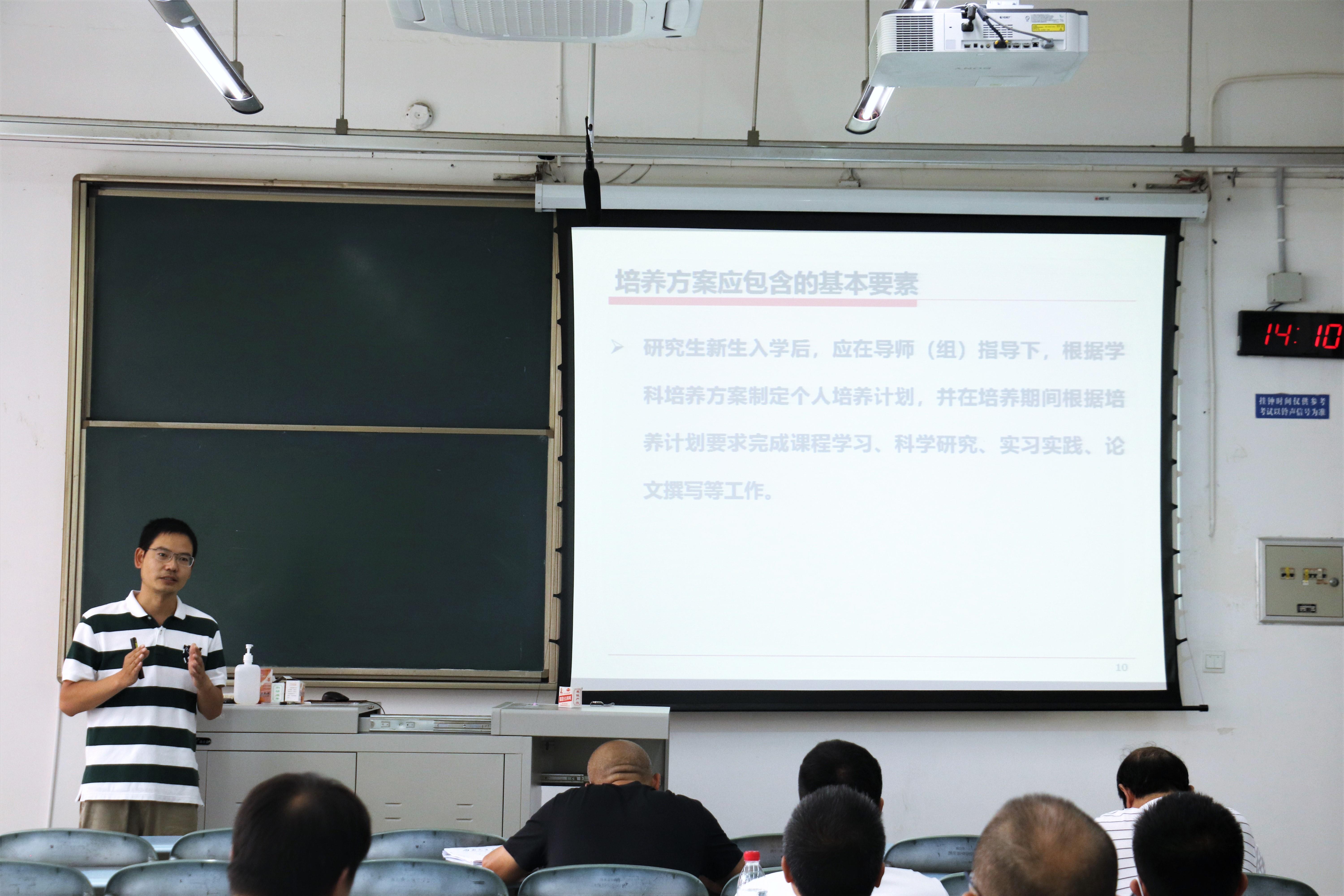 紧接着杨洋教授讲述了关于研究生培养过程的管理与质量督导实施办法。其中主要有研究生学习档案建档与管理和过程管理检查与督导。讲解期间,杨洋教授特别强调研究生学业档案建档的必要性和及时性。