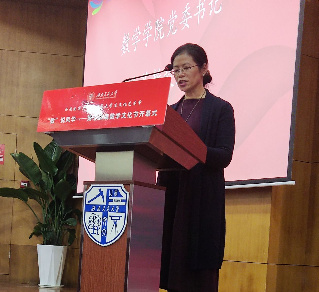 开幕式伊始,徐革书记为本届数学文化节致开幕词。徐革书记指出:12年以来,交大每年都举办数学文化节,数学文化节已成为交大一大品牌活动。举办数学文化节旨在提高学生的数学素养,让学生更清晰地体会到数学之美。徐书记强调了数学对个人和国家的重要性:数学不只是一门学科,更代表着一种实事求是、勇于探索的精神。她从几组关键的数字出发,带领同学们回顾从1921年共产党成立,到当今832个国家级贫困县全部脱贫摘帽的百年历程。最后,徐革书记引用了著名数学家徐利治教授的话:数学教育与数学教学的目的之一,应当让学生获得对数学美的审美能力,并强调指出这也是举办数学文化节的初衷所在。