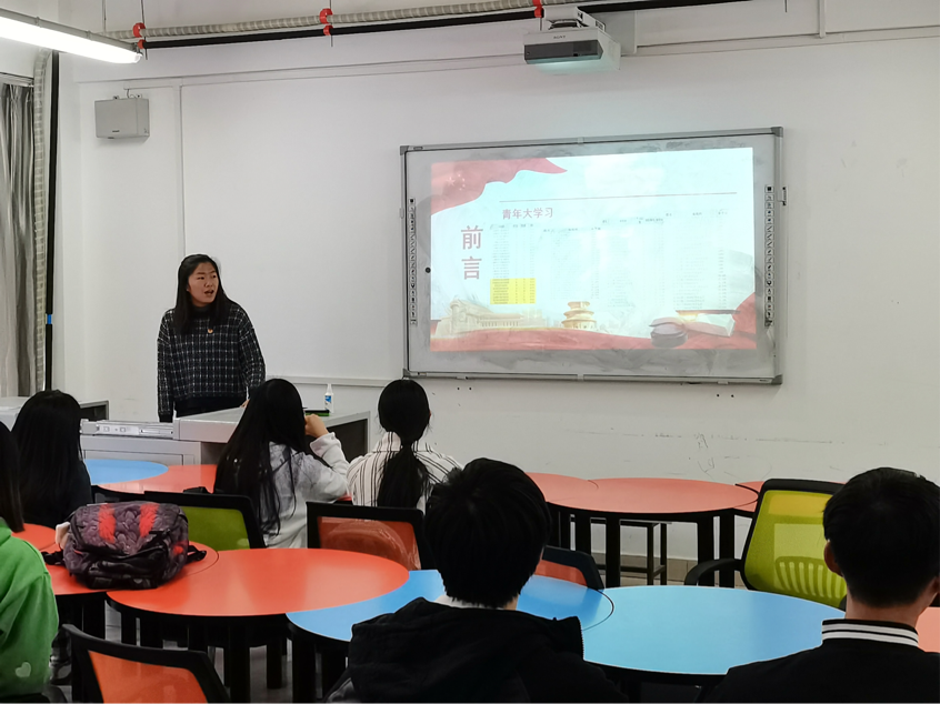 团委秋季学期“开学第一堂团课”的号召。统计学2020级01班团支部于10月26日11:30在X2121开展了“爱国教育”主题团课。本次团课由团支部书记黄玉欣主持,支部34名团员按时参加。