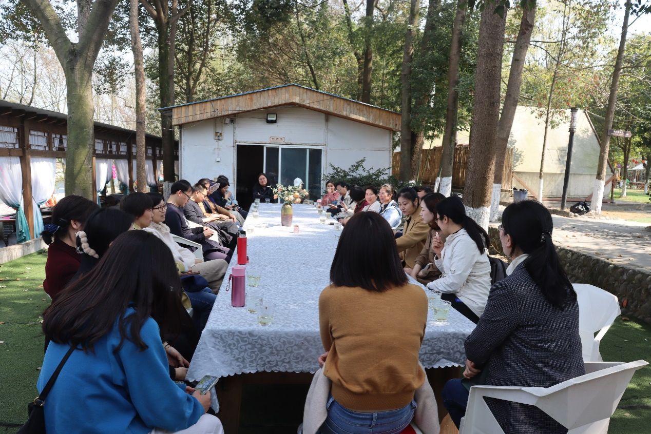 故事会结束后,老师们在编织手工、赏花踏青、交谈品茗中共度了下午的闲暇时光。