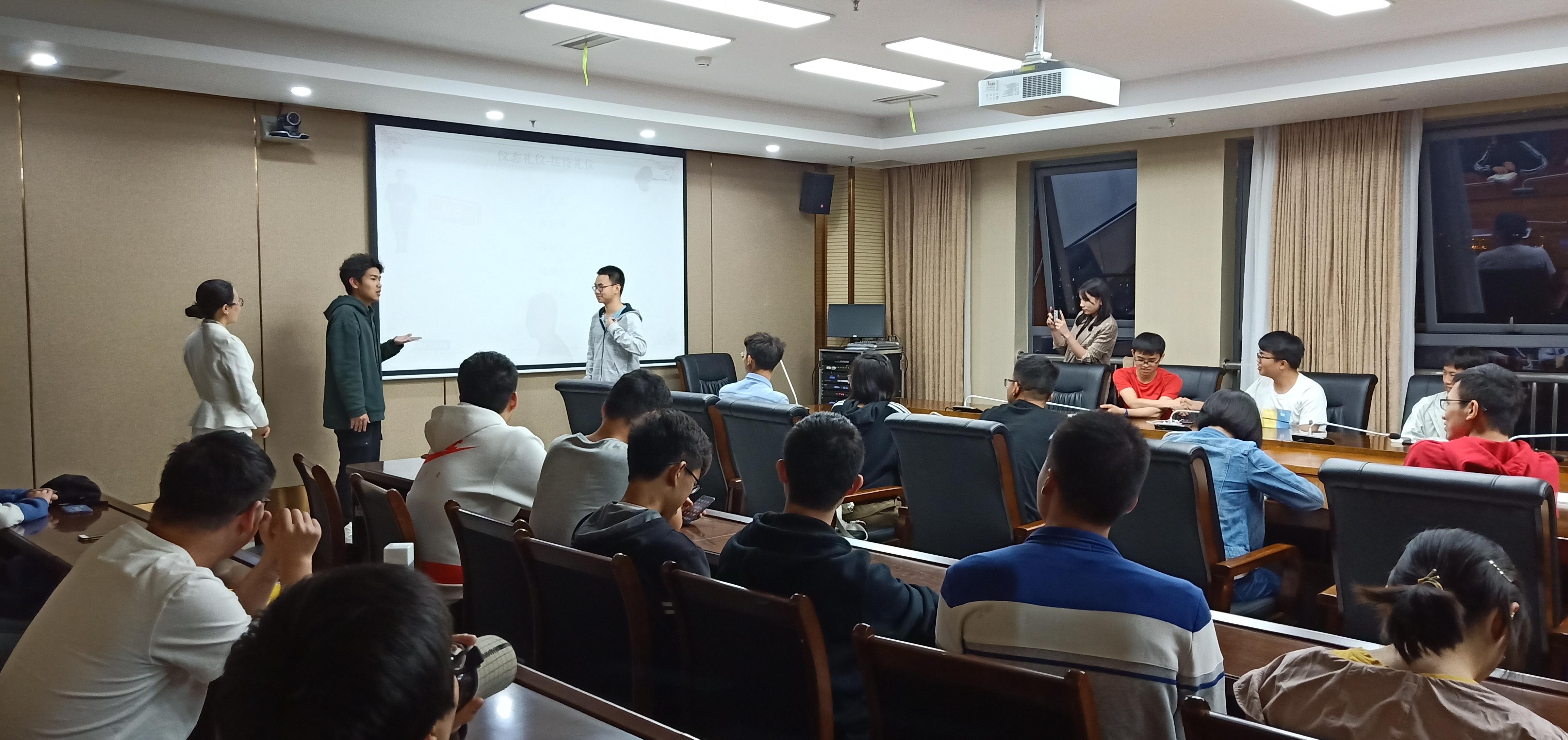 123周年校庆之校友返校活动的志愿服务工作。培训老师以“大树理论”为切入点向志愿者们诠释了服务的真谛:角色转换。并以此展开了多个方面的培训工作,其中主要是从服务精神和仪容仪表两方面进行了培训,通过这次培训,志愿者们清晰的认识到了志愿者所应该具备的责任意识和服务精神,并且认真的学习了恰当的礼仪姿态。