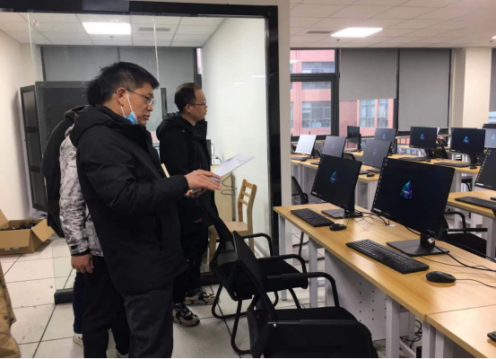 检查组对相关实验室进行了全面检查,重点对实验室的设备布局、安全消防设施的摆放、室内线路安全承载、门窗防盗功能、规章制度的上墙、值日打卡记录等进行了专项检查。恰逢此次贴息贷款项目的部分更新设备安装、调试、验收等环节,李志辉副院长连同校内外三名专家结合招标文件、购置合同等文件开展实地验收,逐项核对设备数量、规格型号、性能参数等,进行现场测试,做到事无巨细,严谨规范。通过检查,实验室设备数量及性能参数符合招标合同、安装摆放规范、场地干净整洁;实验室管理和安全制度健全,值日打卡记录清晰,安全责任到人,实验室运行状况良好。鉴于数学实验实践中心位于五教,与 av解说