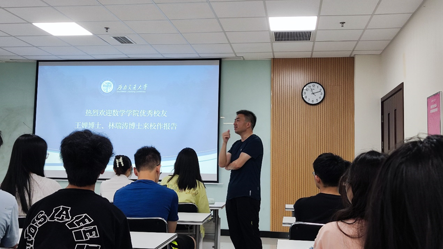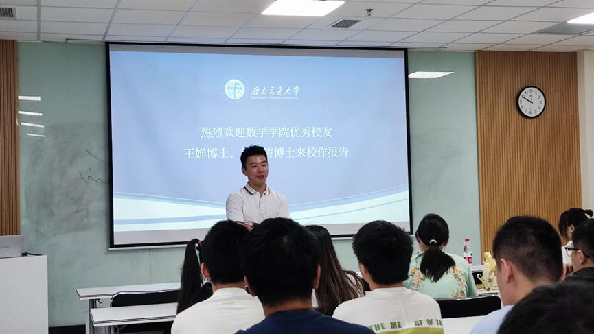 ,曾荣获2010-2011学年竢实扬华奖章、四川省优秀毕业生等荣誉称号,于2016年获得香港大学精算统计系统计专业博士学位,现已在顶级统计和医学期刊上发表论文五十余篇。在报告中,他讲述了他高考后的求学经历:高考失利,母亲病重,在经历一个又一个挫折后,他于沉郁中奋起,泡图书馆,参加数学建模竞赛,持之以恒的努力托举起了他一份份沉甸甸的荣誉。之后他讲述了他在香港和美国的求学经历,并给出了很多实用的建议。在交流互动中,同学们受益匪浅。