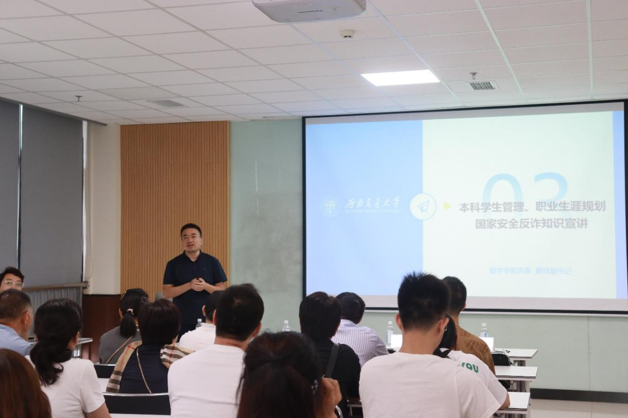 党委副书记黄祥从本科学生管理、职业生涯规划、国家反诈知识宣讲等方面与家长进行深入交流。在提问环节中,家长们积极踊跃提出问题,黄祥副书记及辅导员老师们进行了细致的解答。