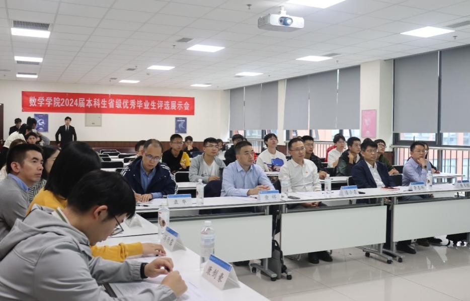 10月12日下午2点30分, av解说 2024届本科生省级优秀毕业生评选展示会在X30456召开。担任本次评选会的评委老师有: av解说 副院长潘小东、副院长李志辉,党委副书记黄祥,统计系主任唐家银、信息与计算科学系主任孟华,班导师代表崔宁伟、何星星、钟华、彭英萍、张鹏飞、何莎、康剑豪、冯雨露。参加本次评选会的还有各年级辅导员老师和学生代表。本次评选会由吕薇老师主持。