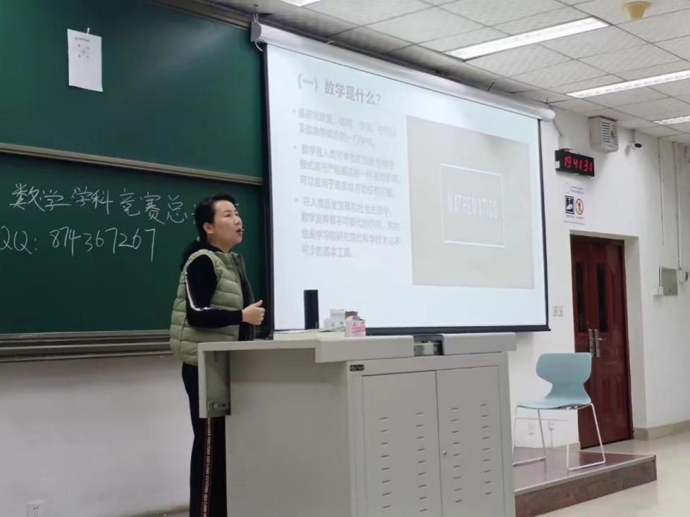 11月14日晚7时30分,公共数学教学研究部主任梁涛在X1215以“数耀中华,爱上数学”为主题,为到场同学提纲挈领地介绍了数学类竞赛的内容。梁老师从参加数学类竞赛的意义出发,鼓励同学们利用好各类数学平台、书籍、srtp实践项目,积极参与全国大学生数学竞赛、全国大学生数学建模大赛、全国大学生市场调查与分析大赛、全国大学生统计建模大赛四项数学类赛事,在实践中不断提升自身数学素养和综合素质。