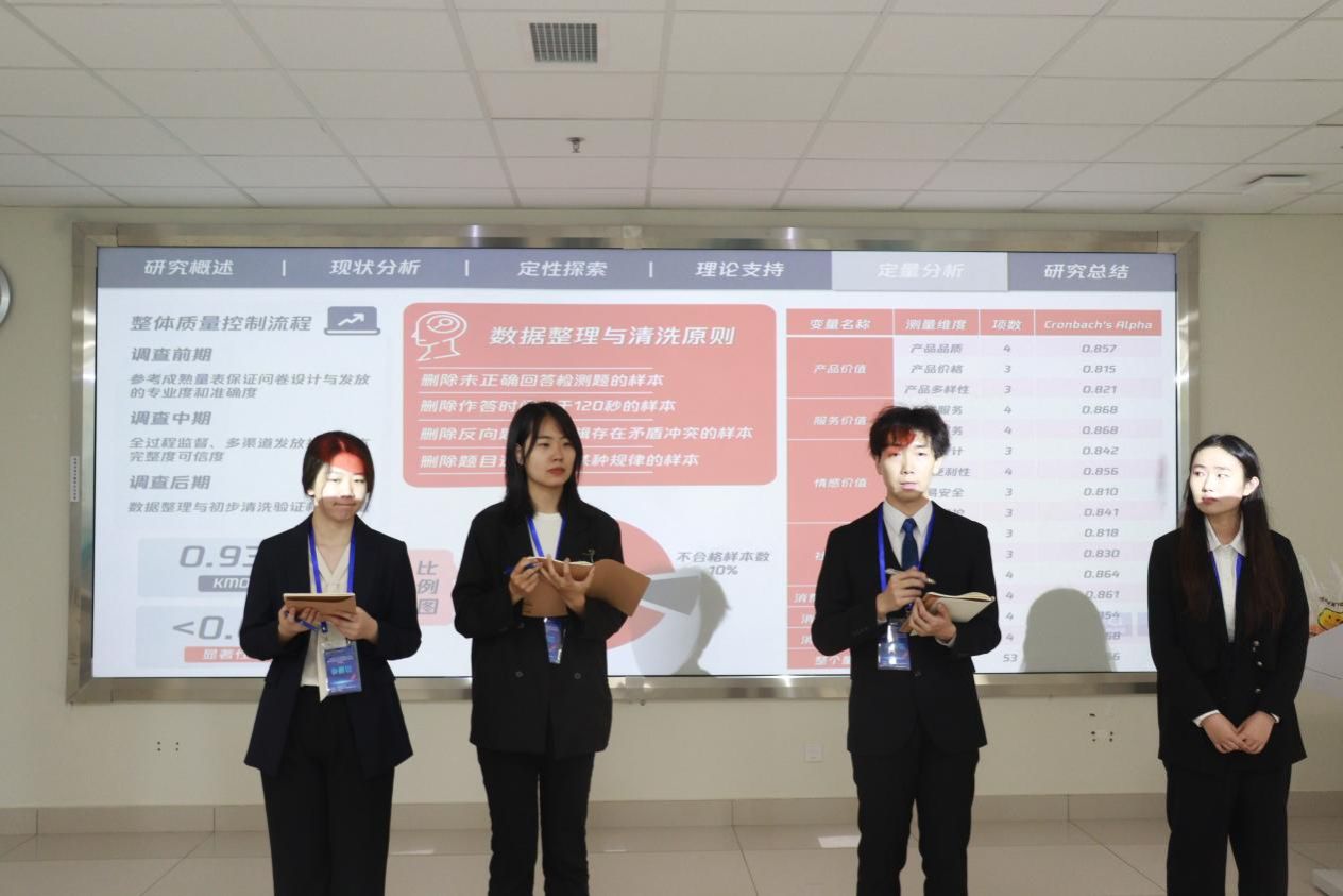 各参赛队伍围绕老年群体“候鸟式”度假旅游消费行为、生鲜电商平台营销策略、古镇旅游、教育帮扶、国货浪潮、客家文化、大学生“特种兵式旅游”、年画文创、共享茶室等热点问题开展调查研究,通过PPT、视频、情景剧、曲艺、绘画等形式,借助多媒体或实体道具等工具,多维度展示了他们的研究过程以及研究成果。在答辩过程中,评委老师们的提问切中要害,为同学指出优势与缺点,真正做到了以赛促学。同时,评委老师从研究选题、文献研究、分析方法、方案设计、实地调查等多个方面对参赛作品提出建设性的建议,为参赛团队后期对于报告的进一步完善指明方向。