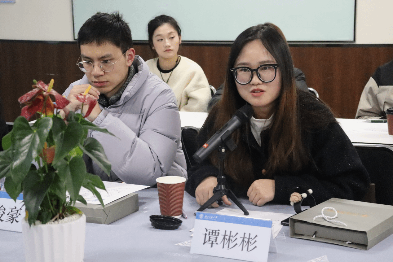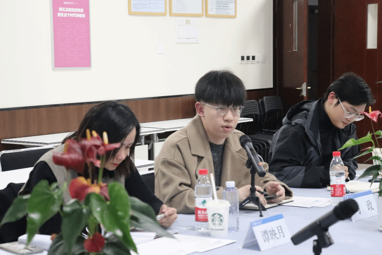 辅导员谭彬彬介绍了数学训练营等学习氛围营造项目,并提到了聘请优秀学生担任教师和党支部一对一帮扶学困生的机制。