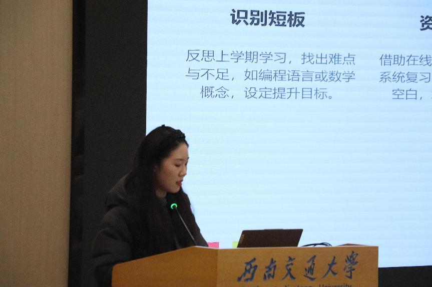 关于考试纪律的各项规章制度,深刻地向同学们揭示了考试违规所带来的严重后果,起到了良好的警示作用。随后,吕薇老师进行阶段性学情分析及学习情况总结。通过详细的数据对比,清晰地展示出各专业、各班级在学习上的优势与不足,点明共性问题并给出了具体的改进措施。她鼓励同学们弥补不足、改进方法,争取在期末考试中取得满意的成绩。
