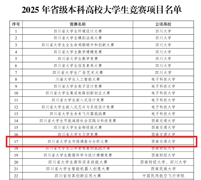 近日,四川省教育厅公布2025年省级本科高校大学生竞赛立项名单,由 av解说