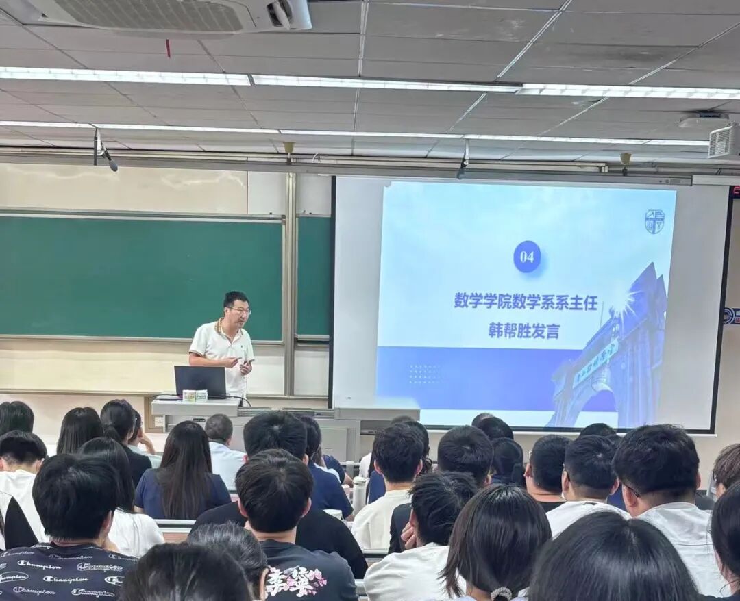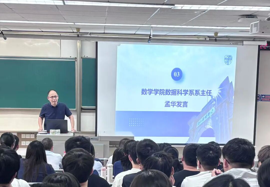 党委书记李志辉、院长杨晗、党委副书记黄祥、副院长杨洋、数据科学系主任孟华、数学系主任韩帮胜及2025级全体新生参会,见面会由研究生辅导员盖少通主持。