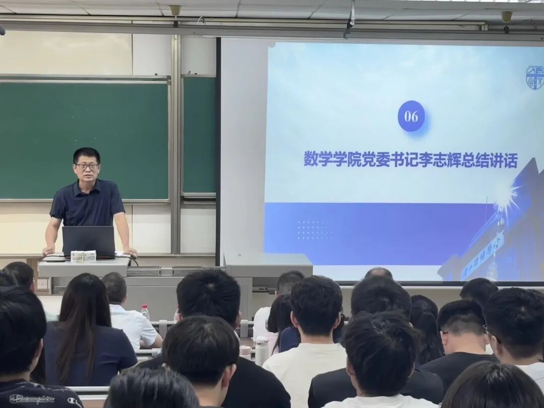 会议最后,李志辉总结发言。他指出,新时代的研究生不仅要在学术道路上追求卓越,更要在生活中守好底线,增强安全意识,筑牢思想防线,自觉抵制不良诱惑,防范电信诈骗,保持身心健康,培养坚韧意志,以稳健姿态投入科研与学习。李志辉强调,研究生阶段既是学术能力提升的重要时期,也是价值塑造与责任担当的关键阶段。同学们要将个人成长与国家发展紧密结合,把学术理想与社会责任统一起来。不忘初心、脚踏实地,成为 “有理想、有本领、有担当” 的数学人。