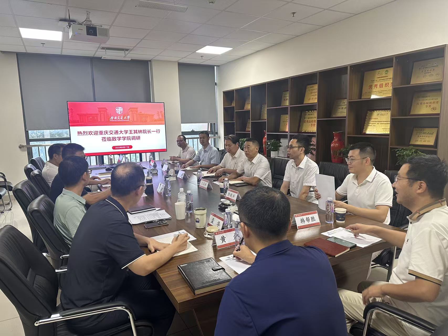 2025年9月17日上午,重庆交通大学数学与统计 av解说 王其林院长一行到 av解说 调研交流。 av解说 党委书记李志辉,党委副书记黄祥,副院长黎定仕、杨洋,系主任黄磊、孟华,韩帮胜,综合事务办公室主任郝虹参加会议。